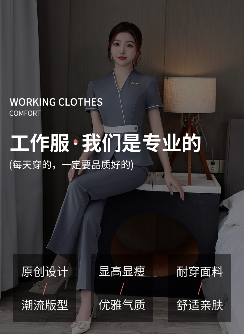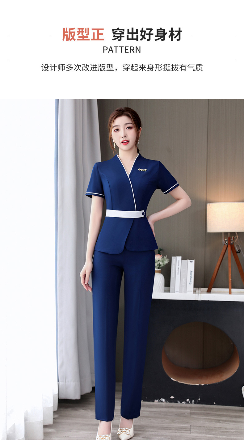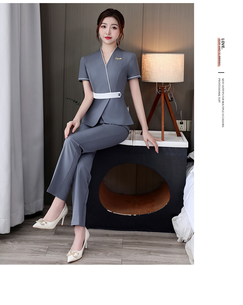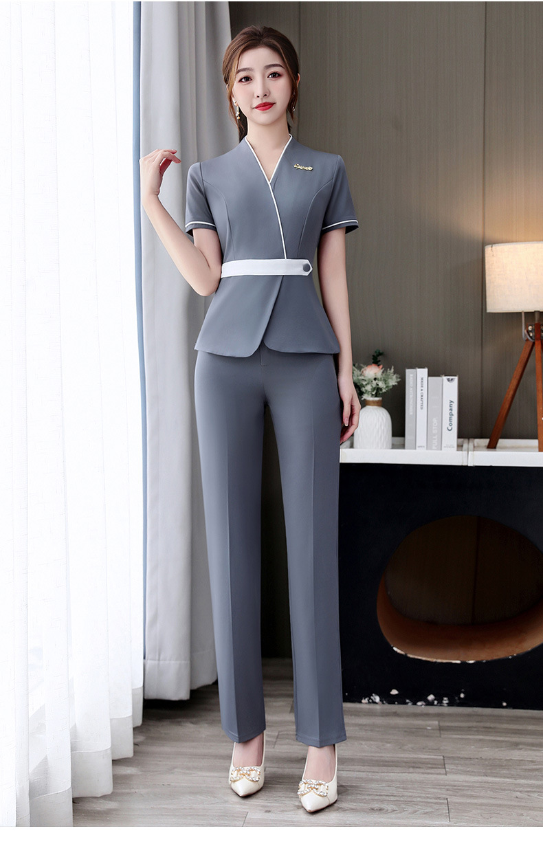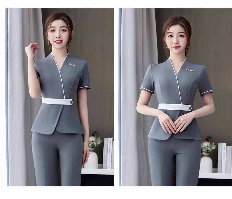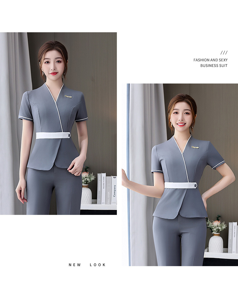 ชุดพนักงานนวดสปา ชุดพนักงานเสริมสวย ชุดทำงาน ชุดสูท SKU-01419 เทา น้ำเงิน S-3XL