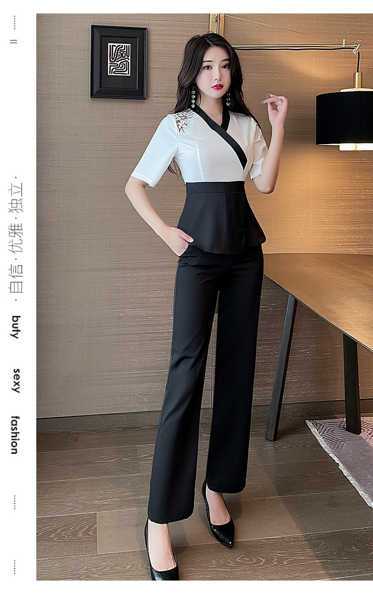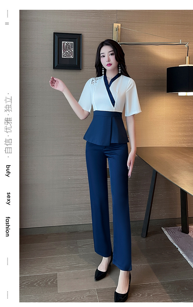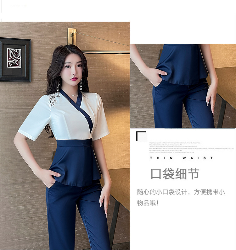 ชุดพนักงานนวดสปา ชุดพนักงานเสริมสวย ทำเล็บ สปาเท้า S6702004 สีดำ กรมท่า S-3XL