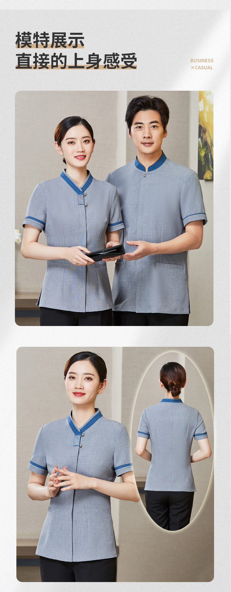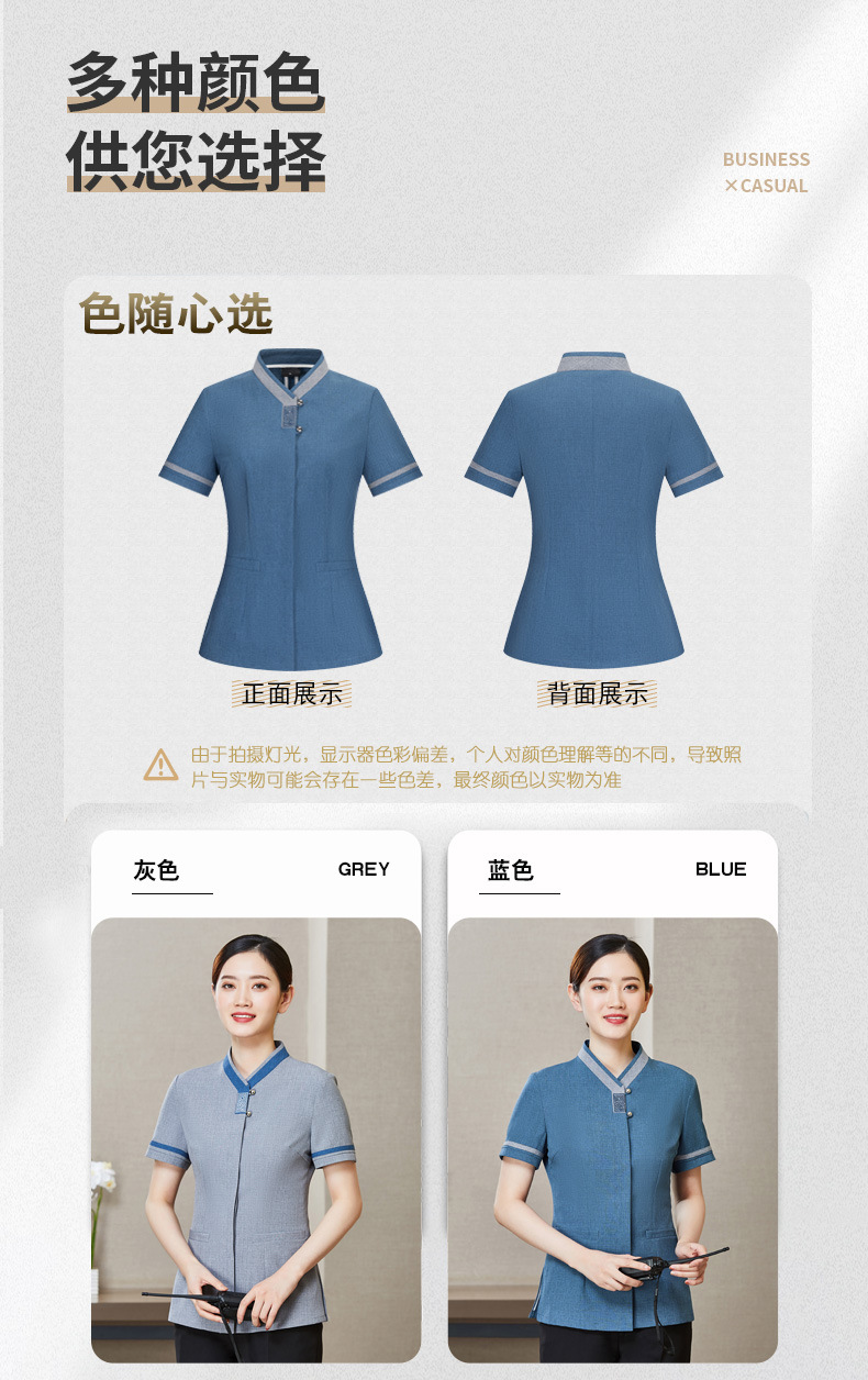 เสื้อพนักงานทำความสะอาด เสื้อแม่บ้าน เสื้อแม่บ้านโรงแรมรีสอร์ท D6503001 สีภาพ L-4XL