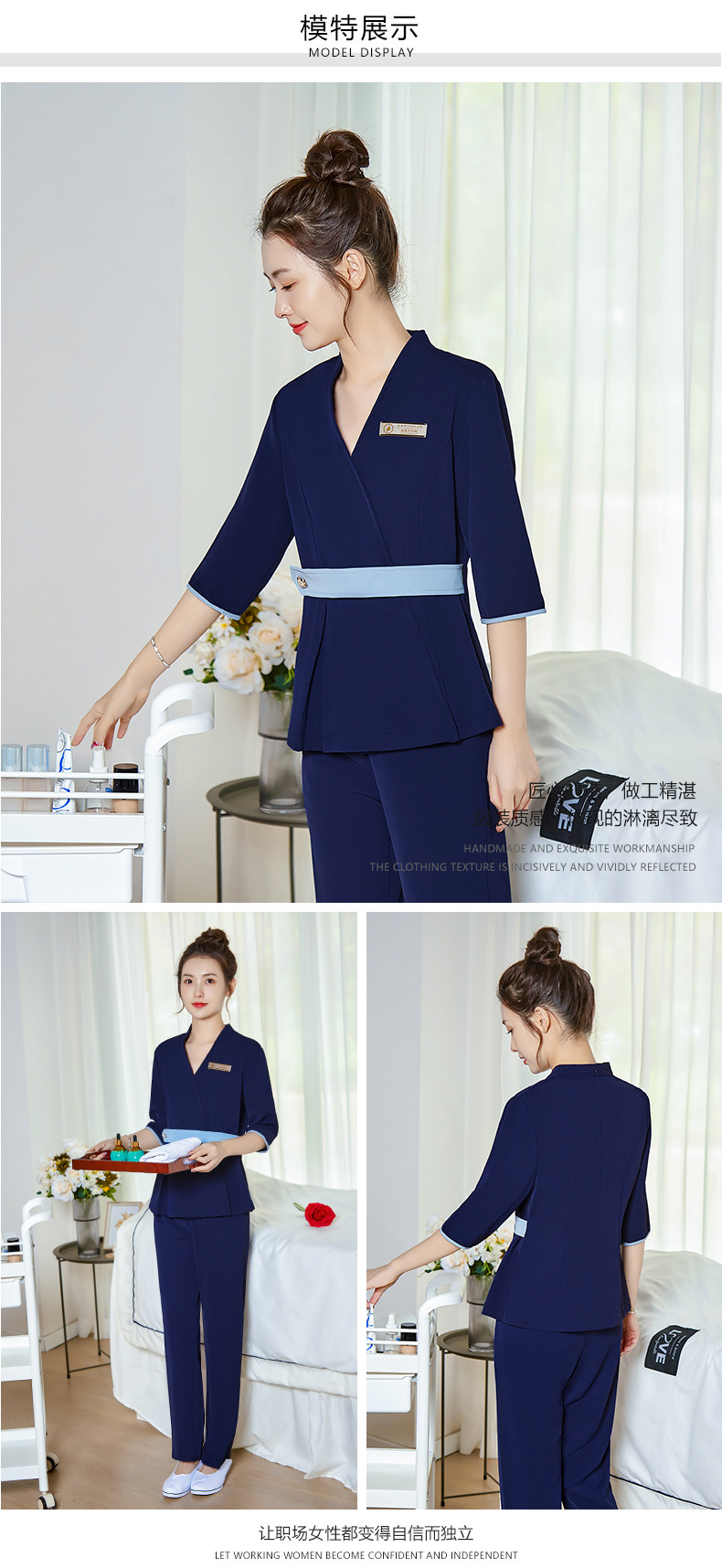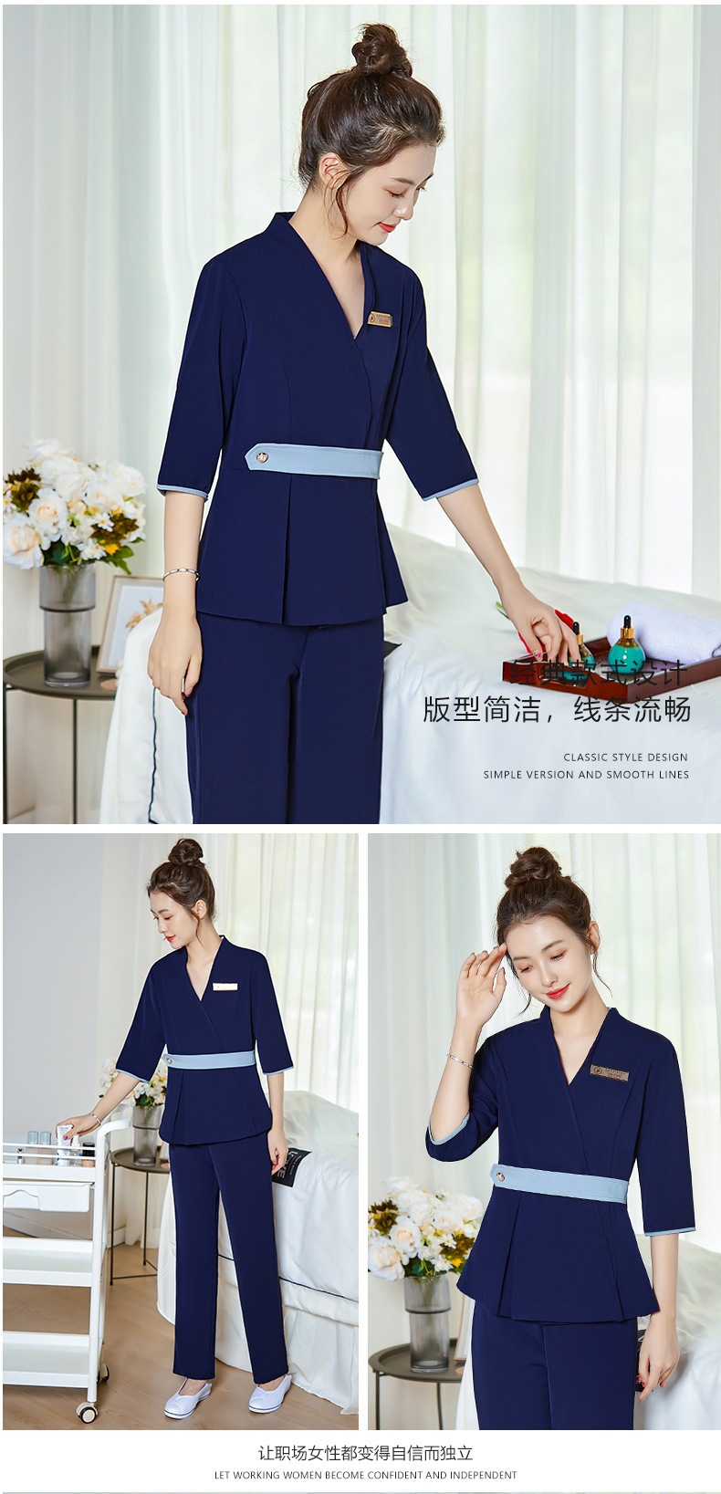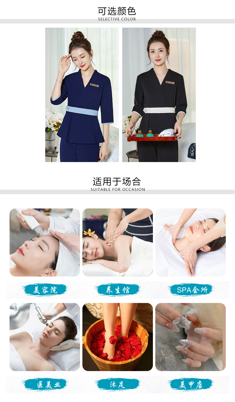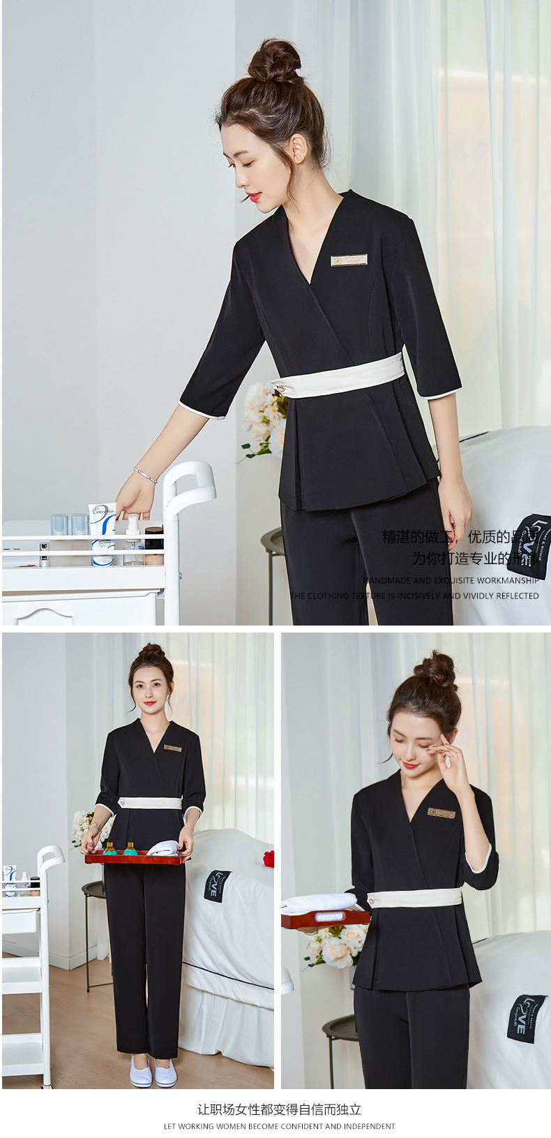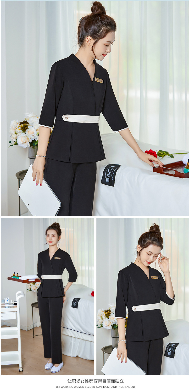 ชุดพนักงานนวดสปา ชุดพนักงานเสริมสวย ชุดทำงาน ชุดฟอร์มพนักงานคลีนิคความงาม S6511004 กรม ดำ S-3XL