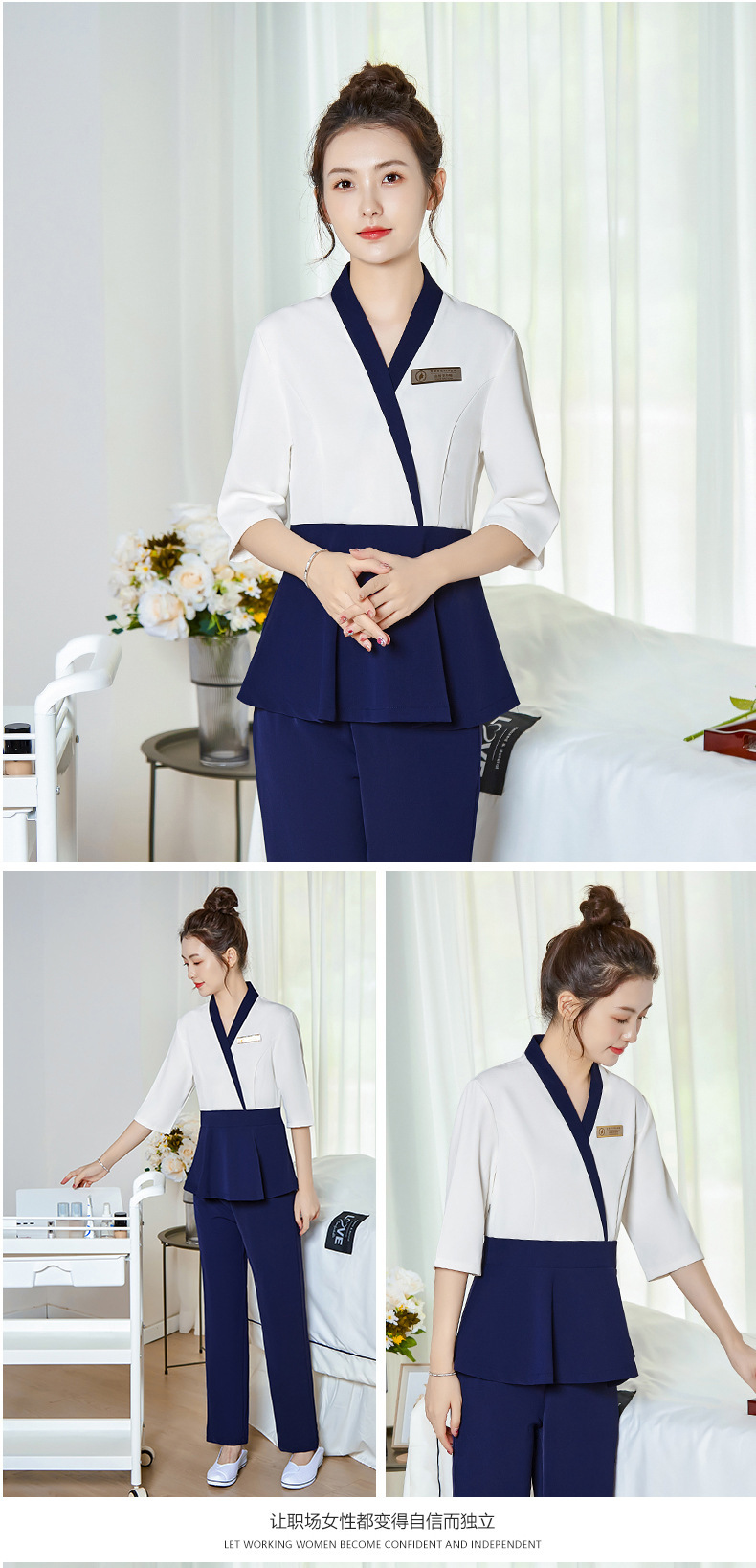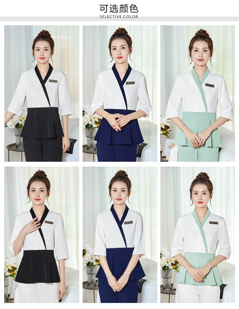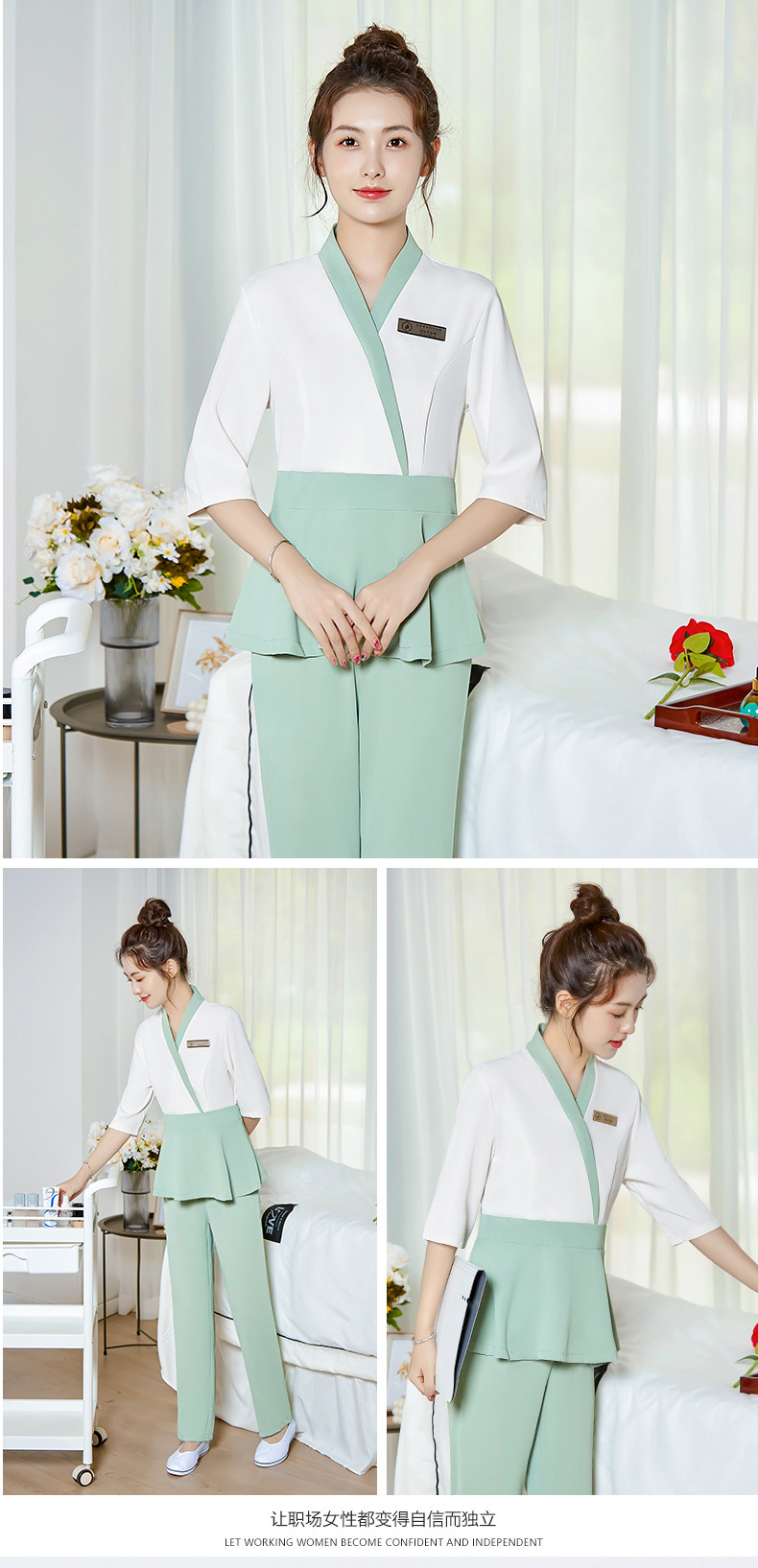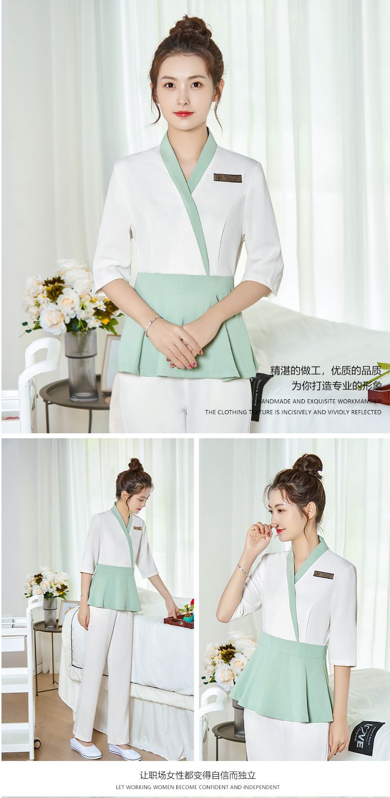ชุดพนักงานนวดสปา ชุดพนักงานเสริมสวย ชุดทำงาน ชุดฟอร์มพนักงานคลีนิคความงาม S6511005 กรม ฟ้า เขียว S-3XL