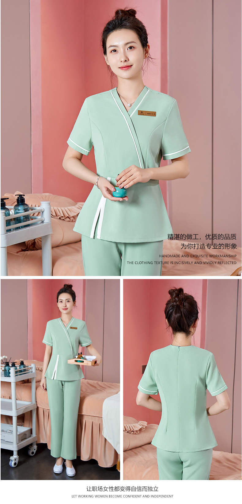 ชุดพนักงานนวดสปา ชุดพนักงานเสริมสวย ชุดทำงาน ชุดฟอร์มพนักงานคลีนิคความงาม S6604001 สีภาพ S-3XL