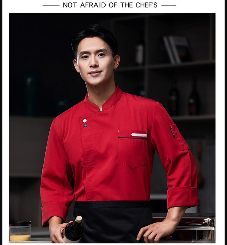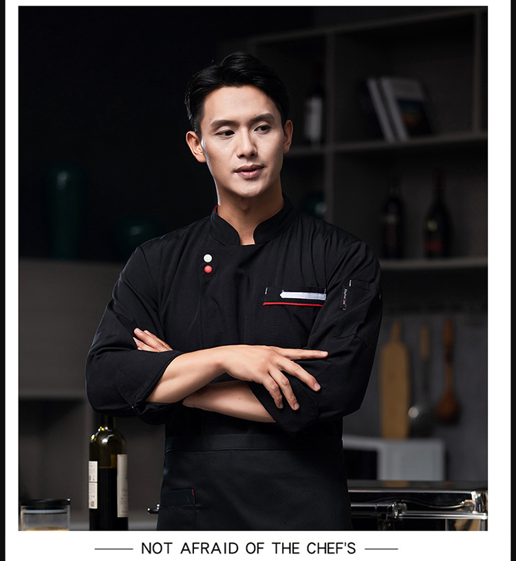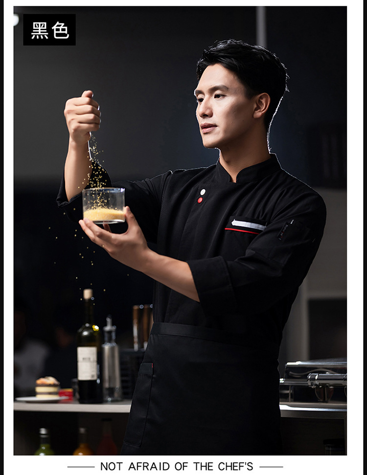 เสื้อเชฟมาตรฐานสากล,เสื้อกุ๊ก,เสื้อเชฟโรงแรม,เสื้อเชฟชาย,เสื้อเชฟหญิง,ชุดเชฟโรงแรม C6705006 ดำ แดง M-4XL