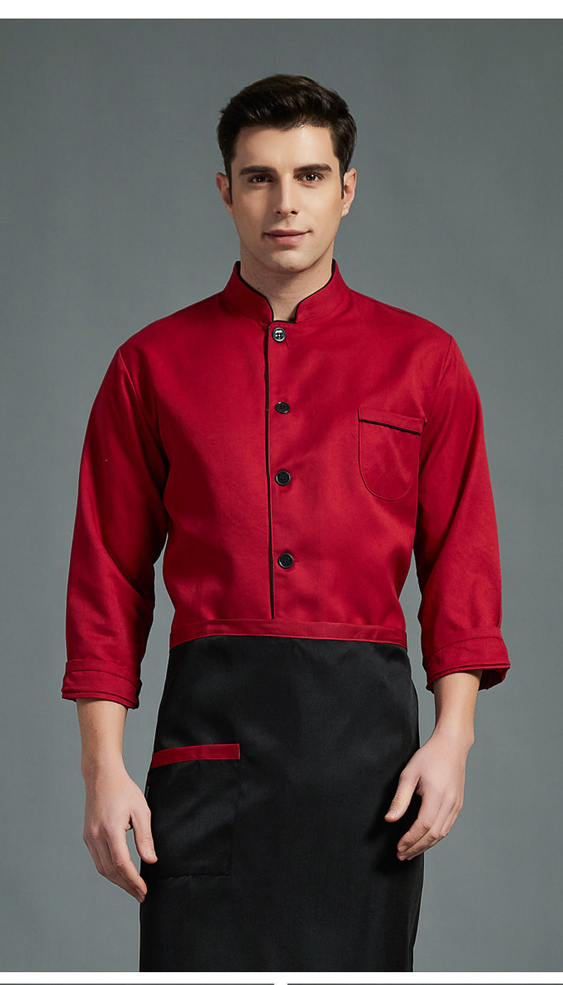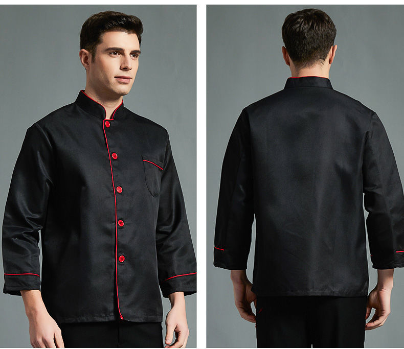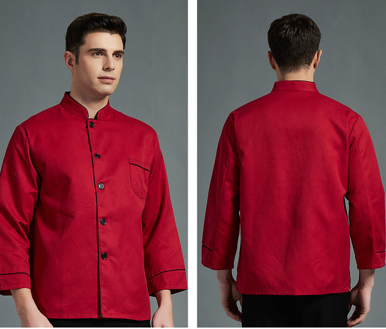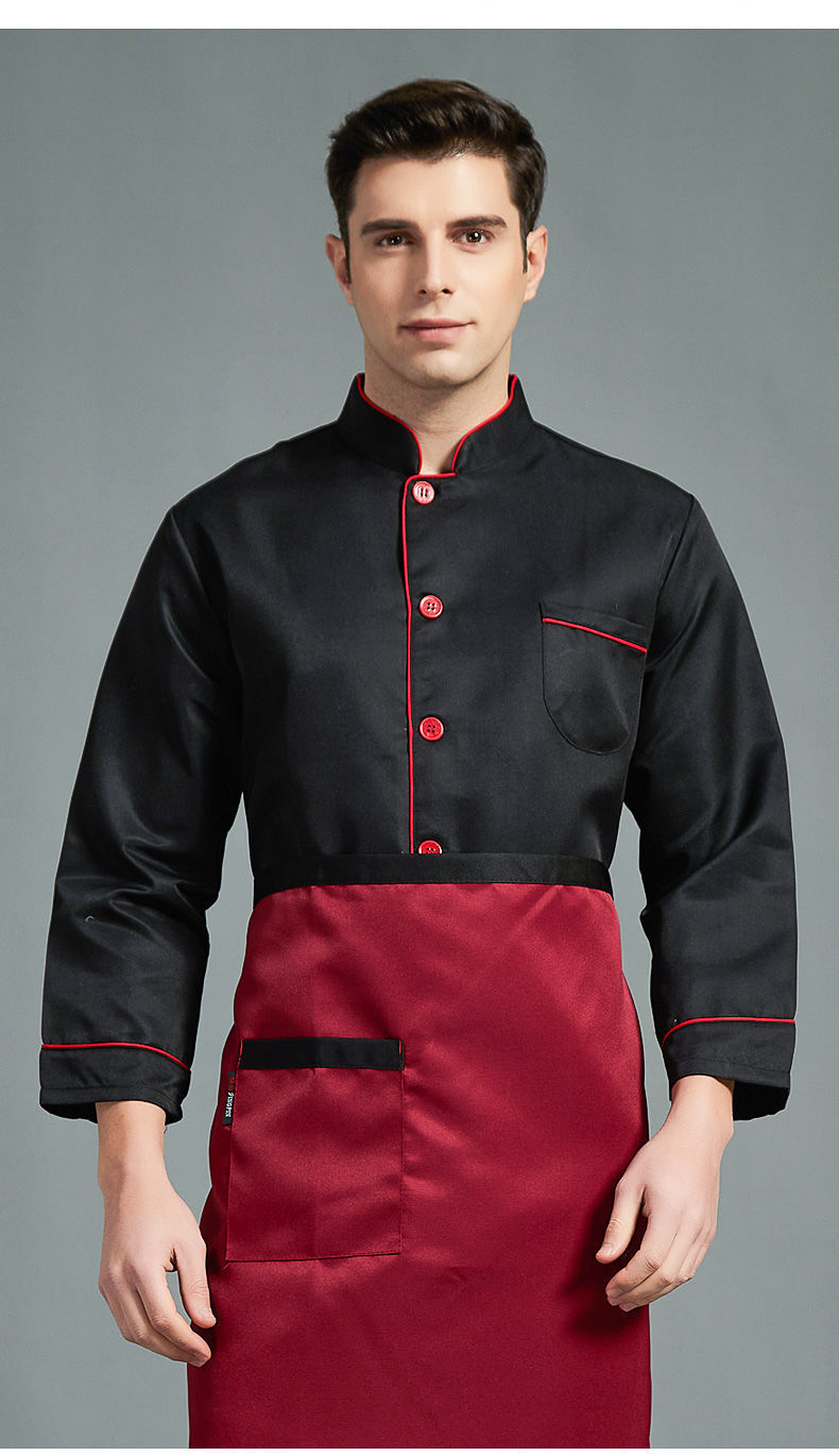 เสื้อเชฟมาตรฐานสากล,เสื้อกุ๊ก,เสื้อเชฟโรงแรม,เสื้อเชฟชาย,เสื้อเชฟหญิง,ชุดเชฟโรงแรม C6705010 ดำ ขาว แดง M-4XL