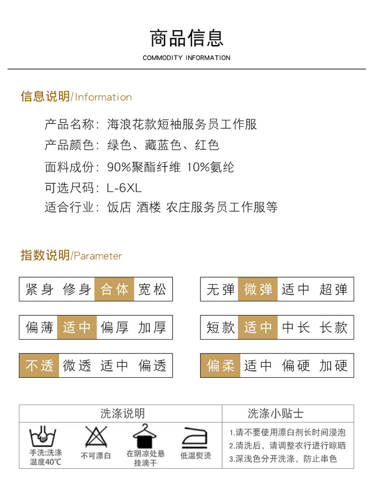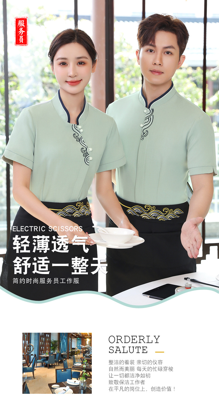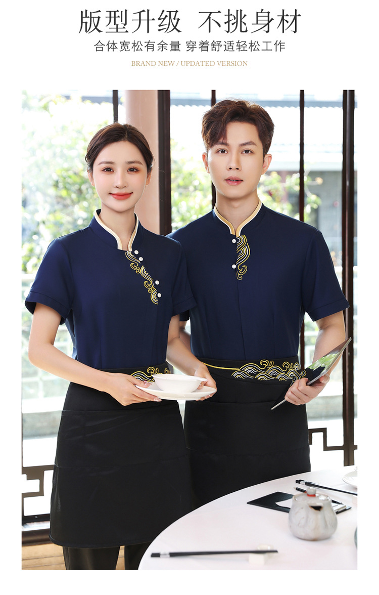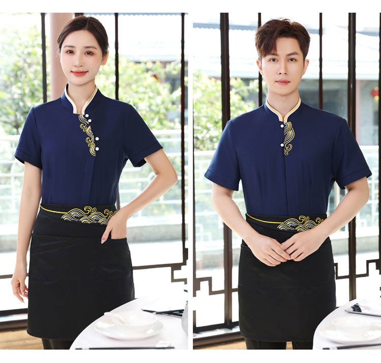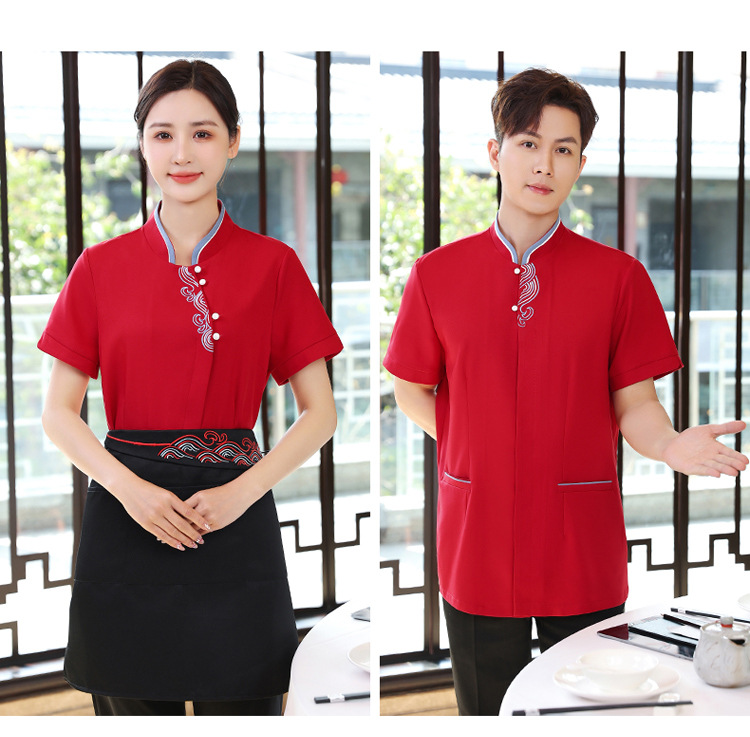 ชุดพนักงานภัตตาคารร้านอาหารจีนโรงน้ำชาญี่ปุ่นเกาหลี แขนสั้ F6705008 แดง น้ำเงิน เขียว L -6XL