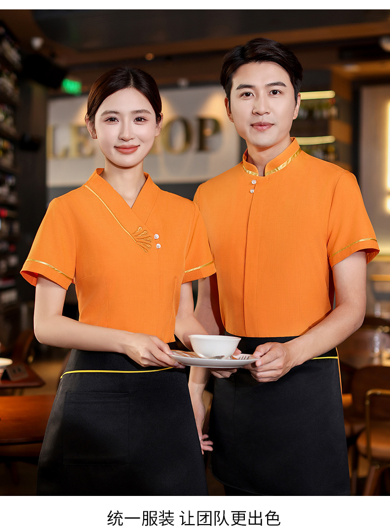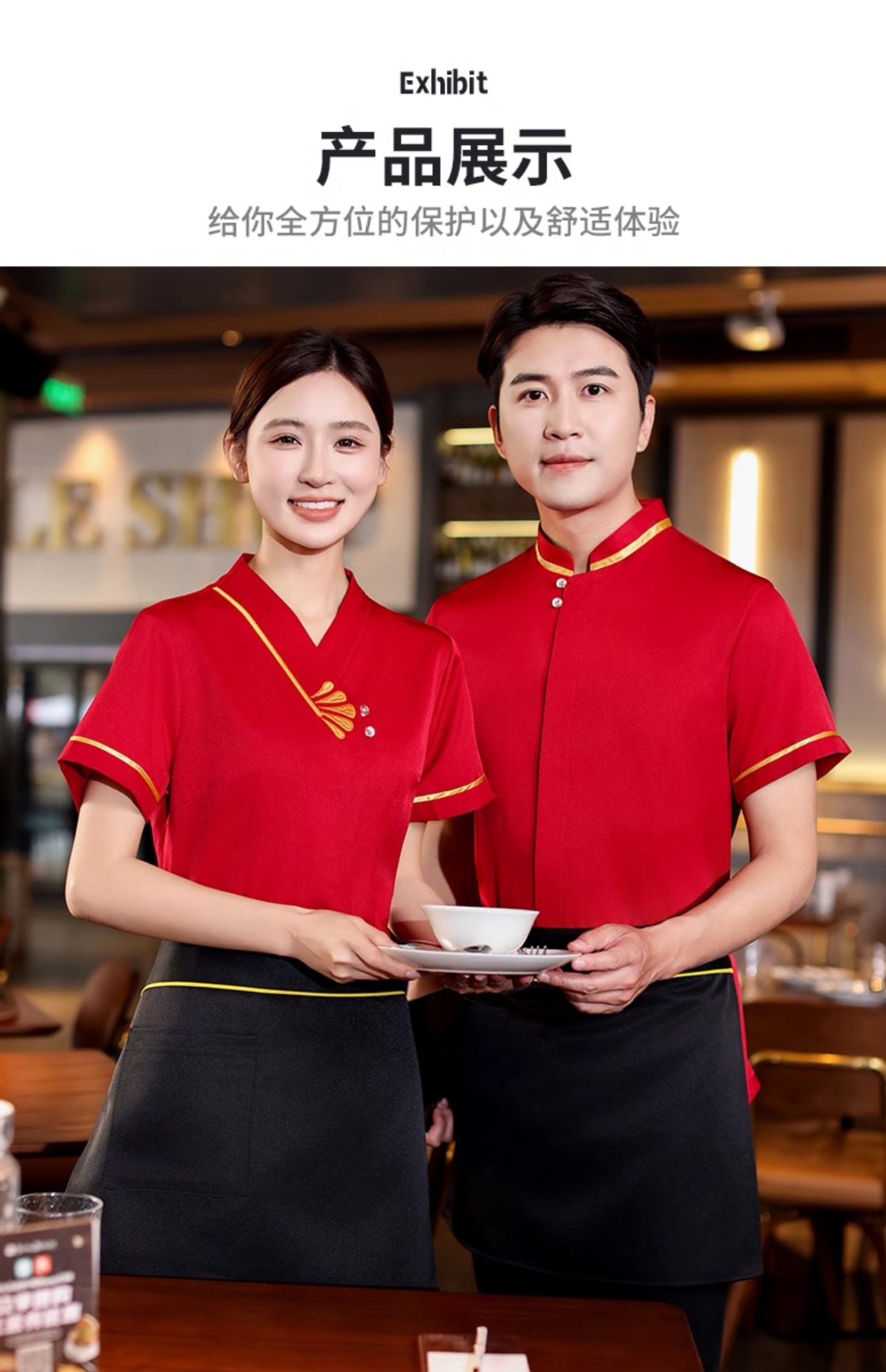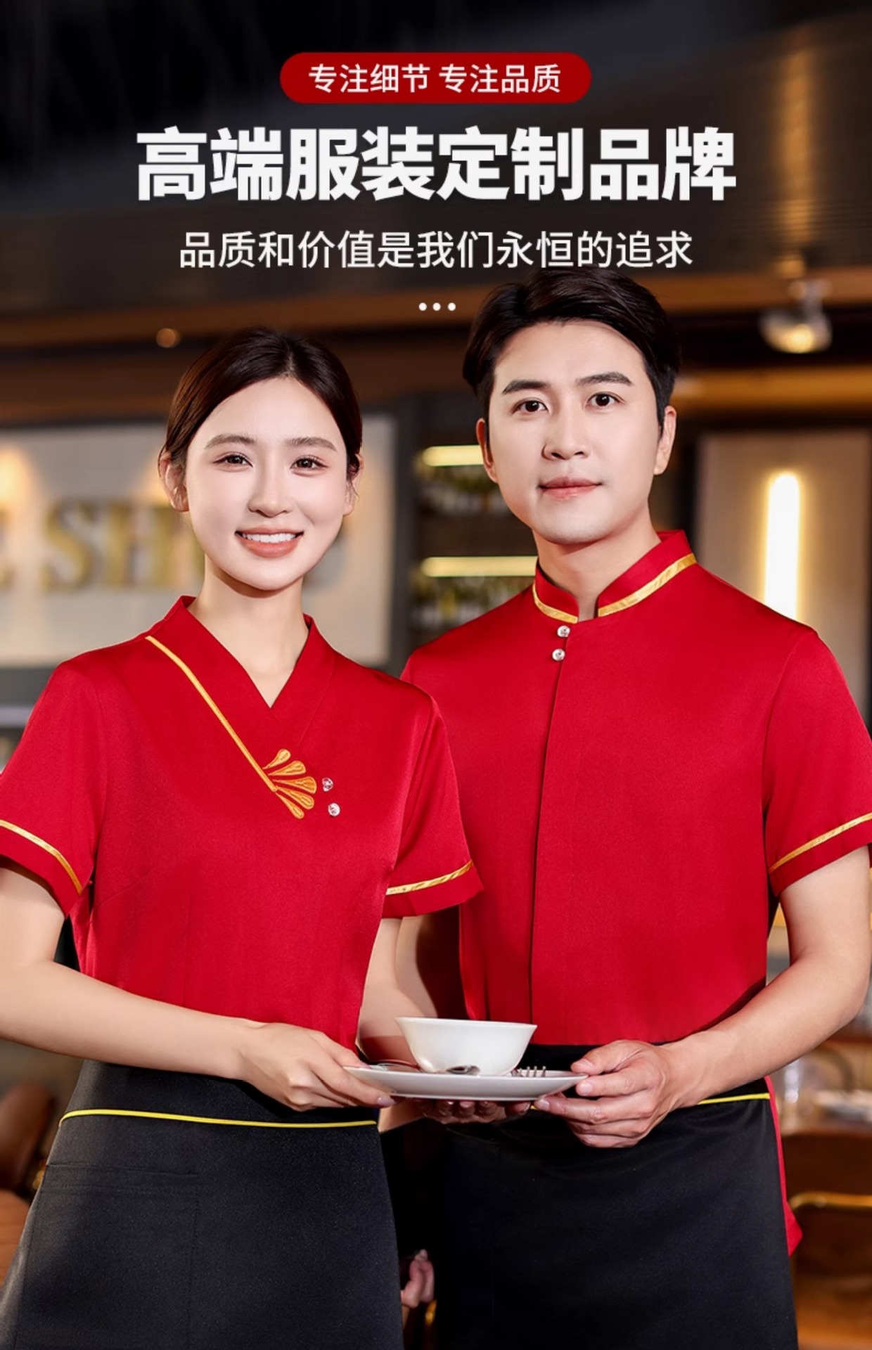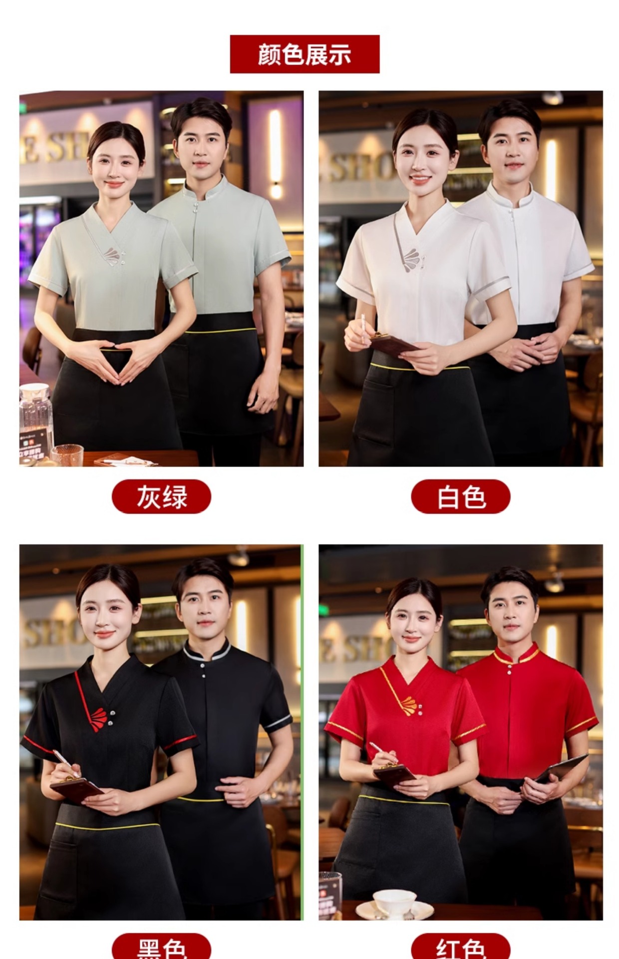 ชุดพนักงานภัตตาคารร้านอาหารจีนโรงน้ำชาญี่ปุ่นเกาหลี แขนสั้น F6705009 แดง ส้ม ขาว เขียว แดง L -4XL