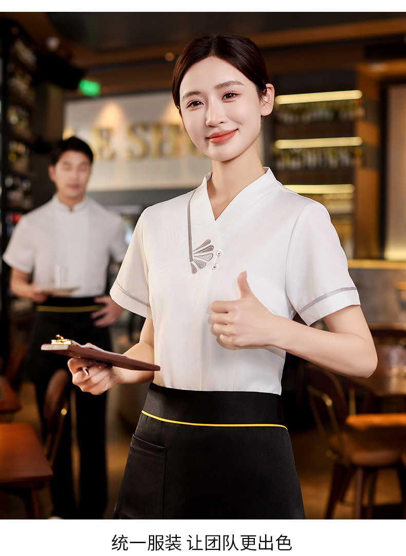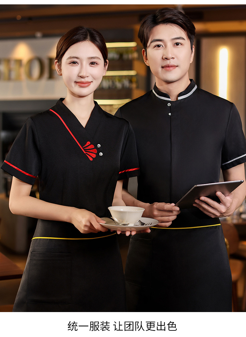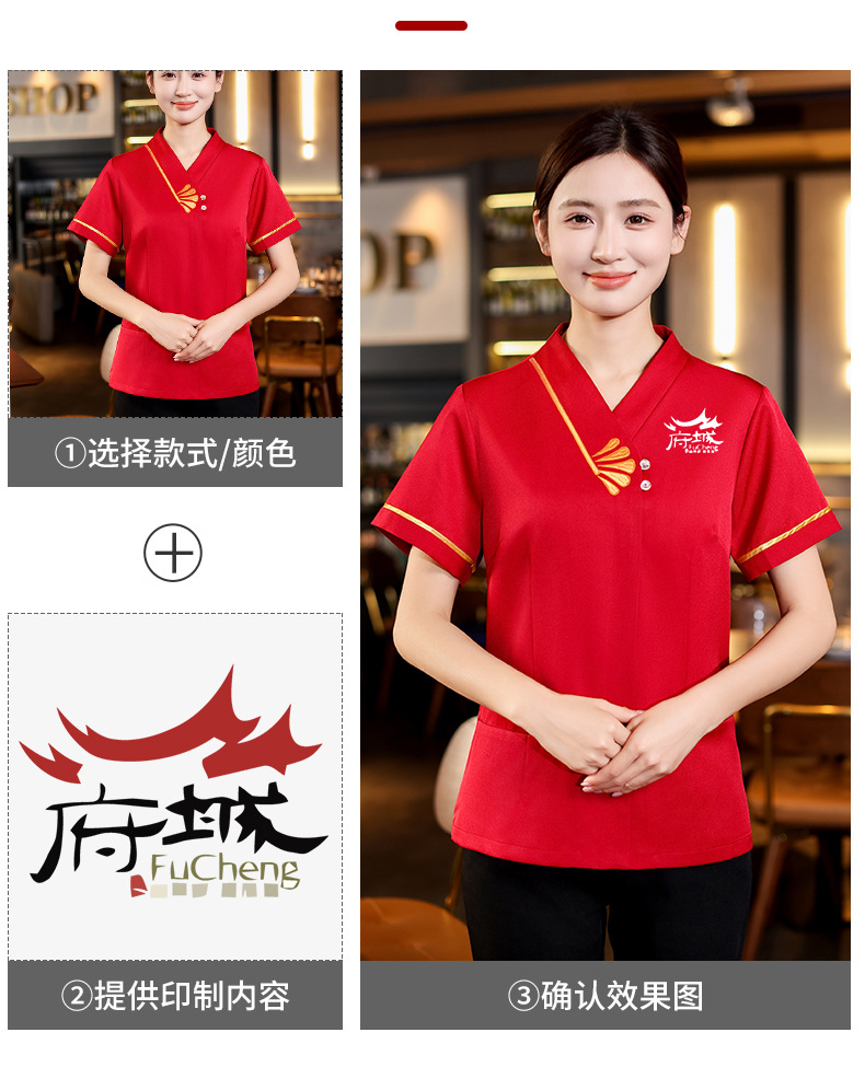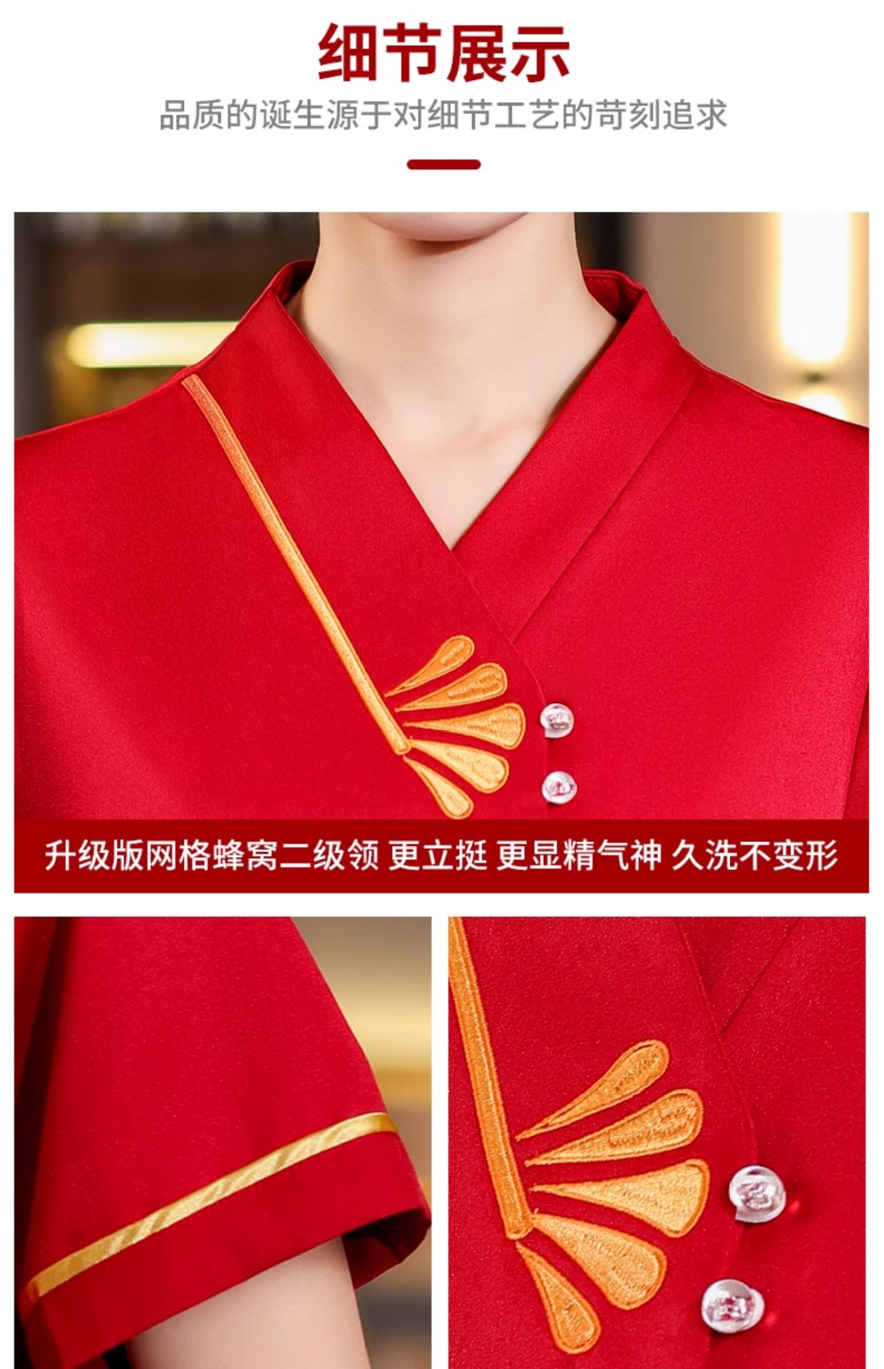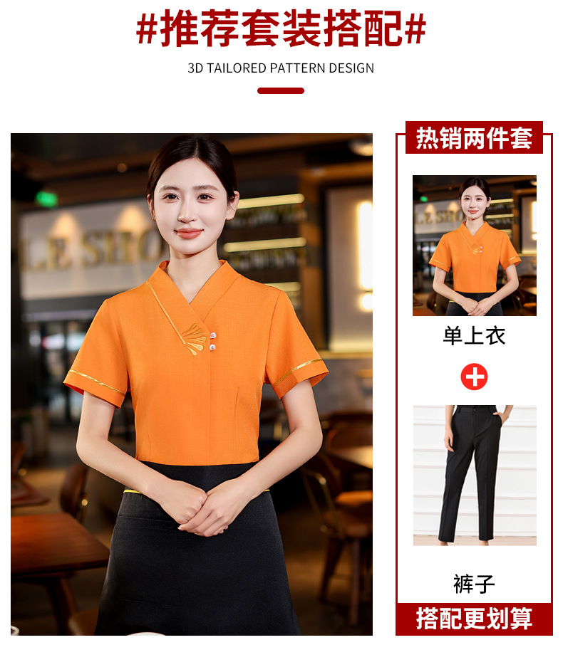 ชุดพนักงานภัตตาคารร้านอาหารจีนโรงน้ำชาญี่ปุ่นเกาหลี แขนสั้น F6705009 แดง ส้ม ขาว เขียว แดง L -4XL