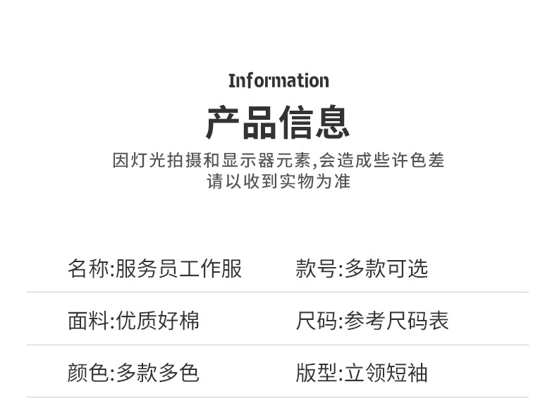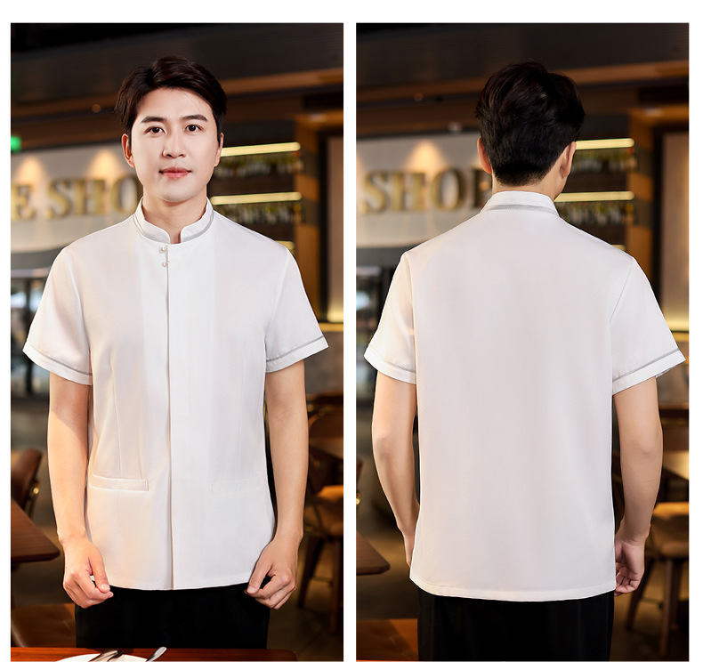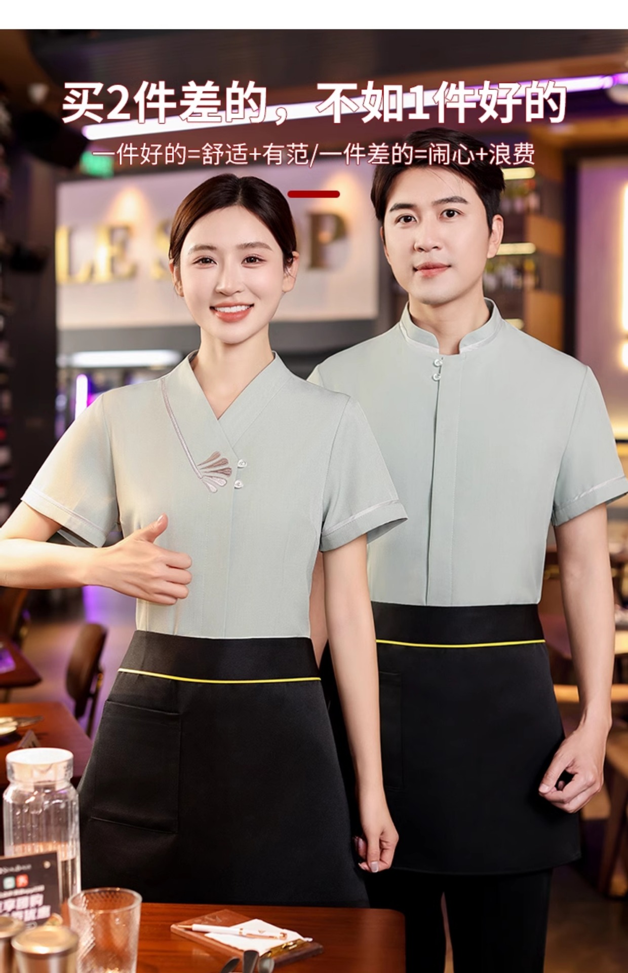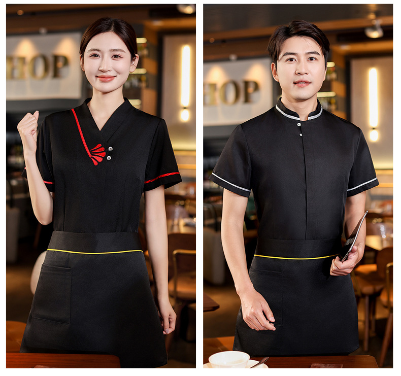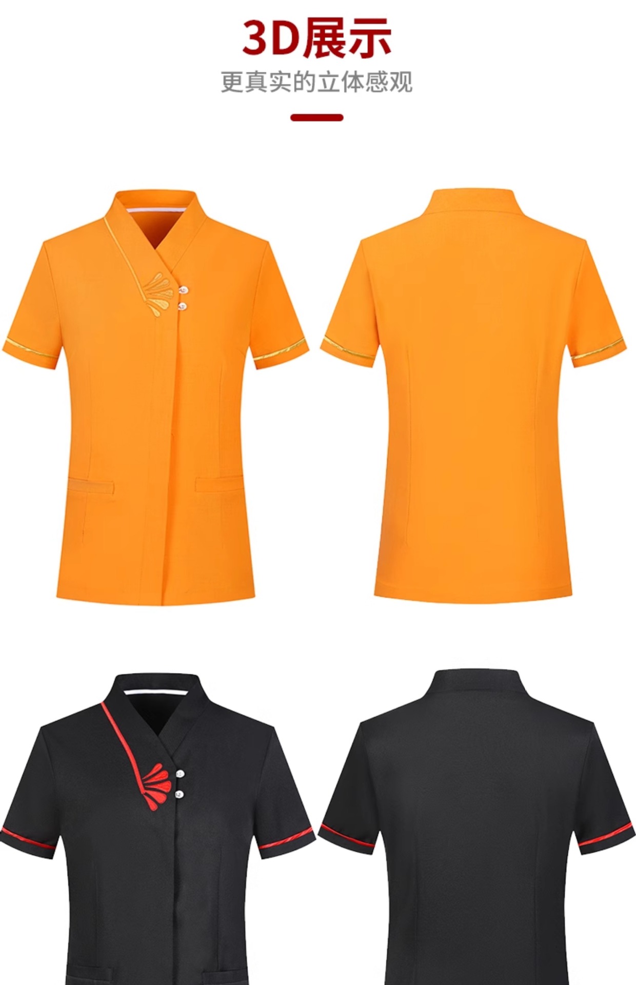 ชุดพนักงานภัตตาคารร้านอาหารจีนโรงน้ำชาญี่ปุ่นเกาหลี แขนสั้น F6705009 แดง ส้ม ขาว เขียว แดง L -4XL