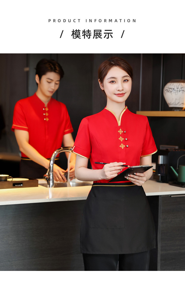 ชุดพนักงานภัตตาคารร้านอาหารจีนโรงน้ำชาญี่ปุ่นเกาหลี แขนสั้น F6705013 แดง ดำ ม่วง L -4XL