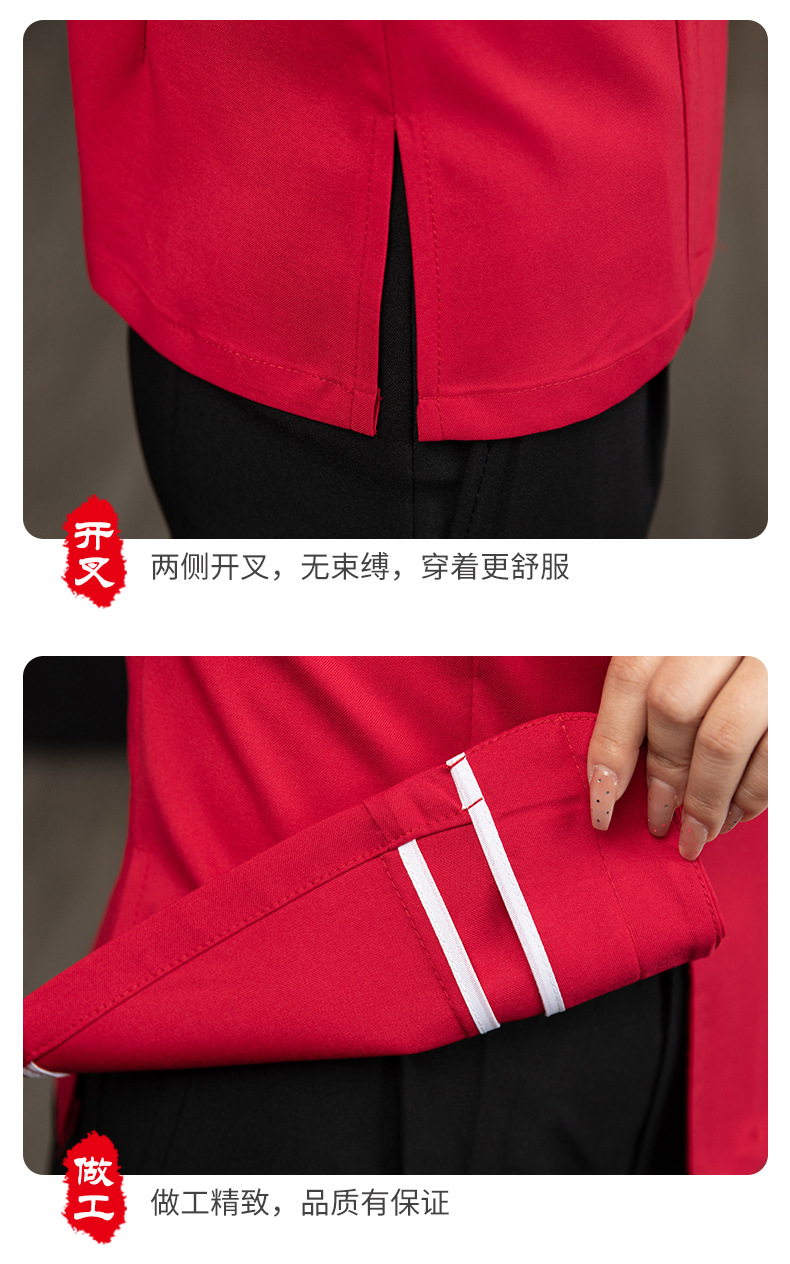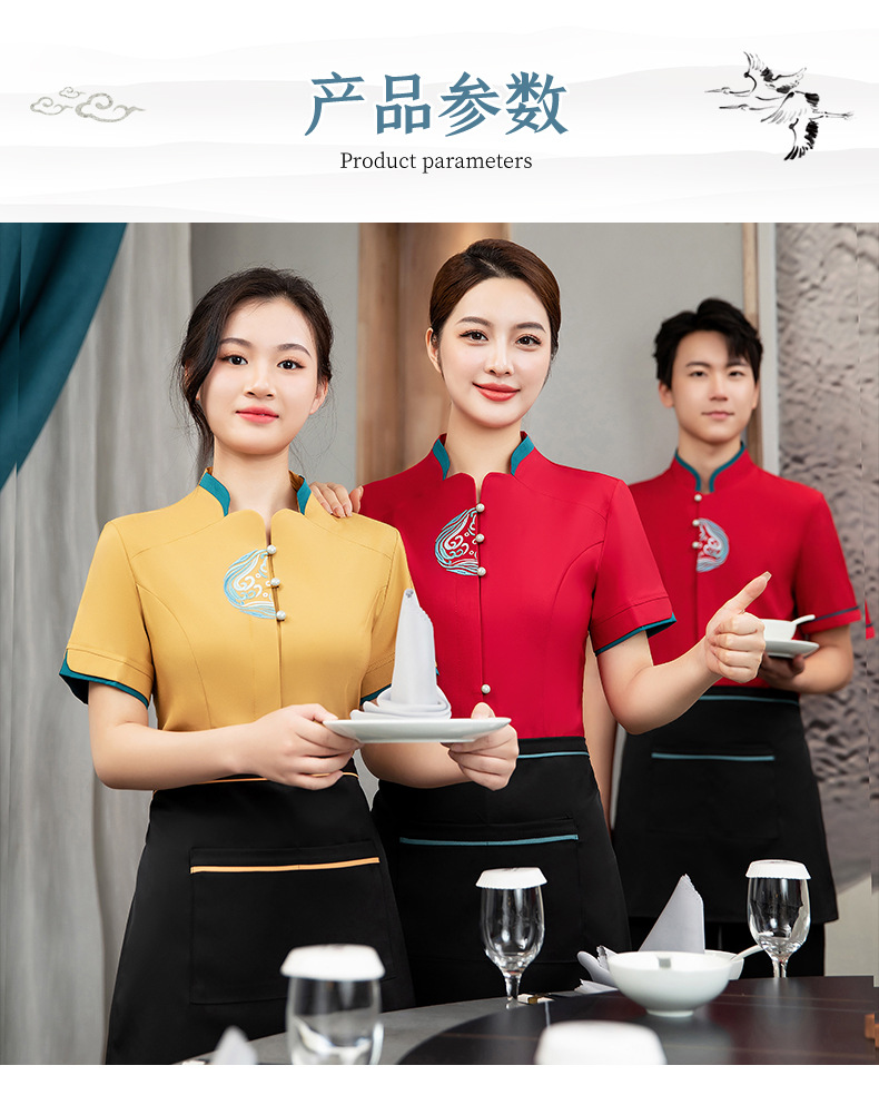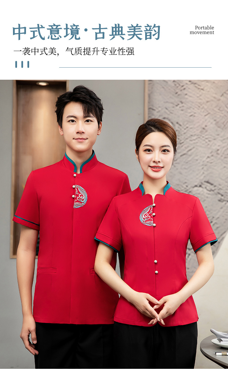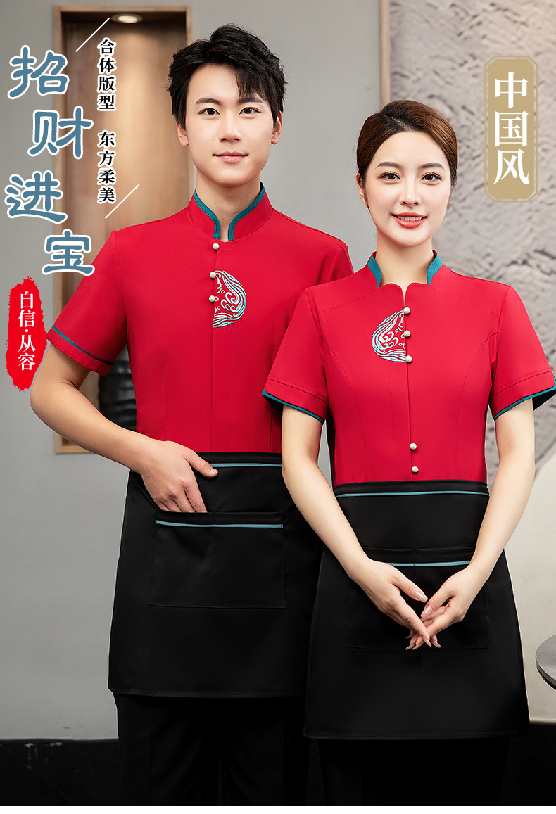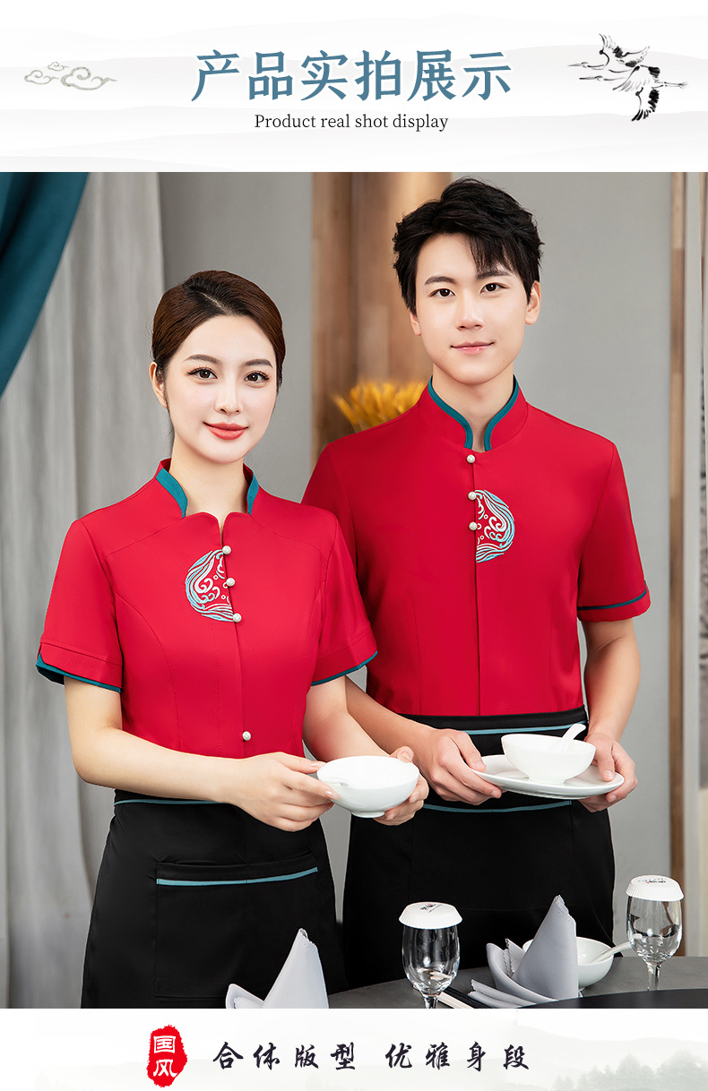ชุดพนักงานภัตตาคารร้านอาหารจีนโรงน้ำชาญี่ปุ่นเกาหลี แขนสั้น F6705022 แดง น้ำเงิน เหลือง เขียว L -4XL