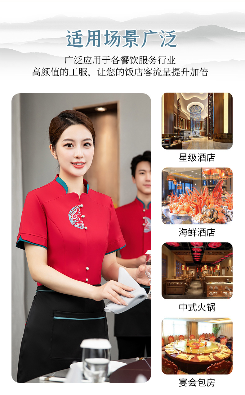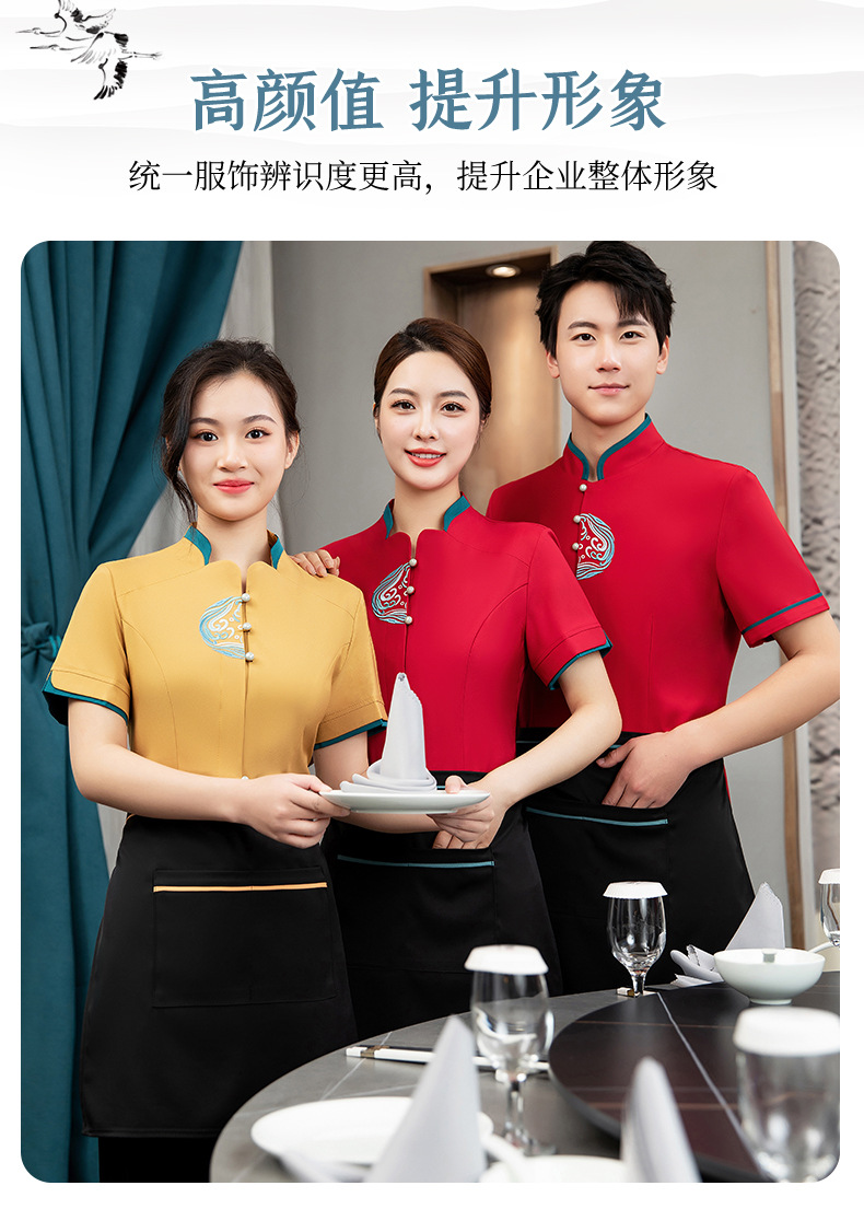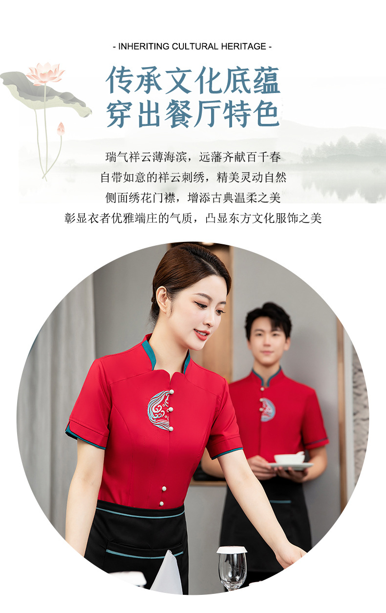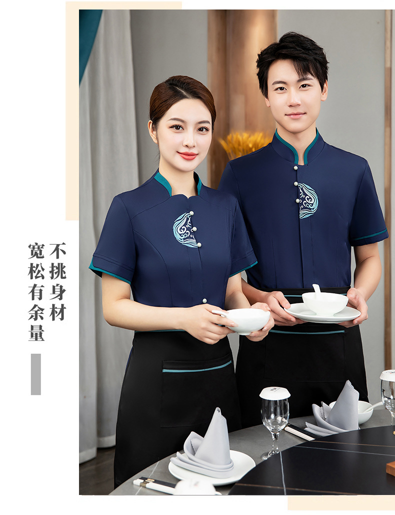 ชุดพนักงานภัตตาคารร้านอาหารจีนโรงน้ำชาญี่ปุ่นเกาหลี แขนสั้น F6705022 แดง น้ำเงิน เหลือง เขียว L -4XL