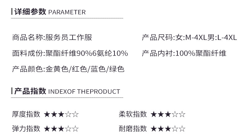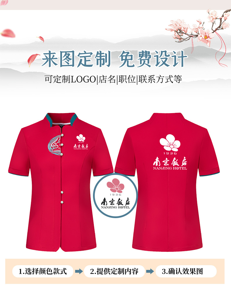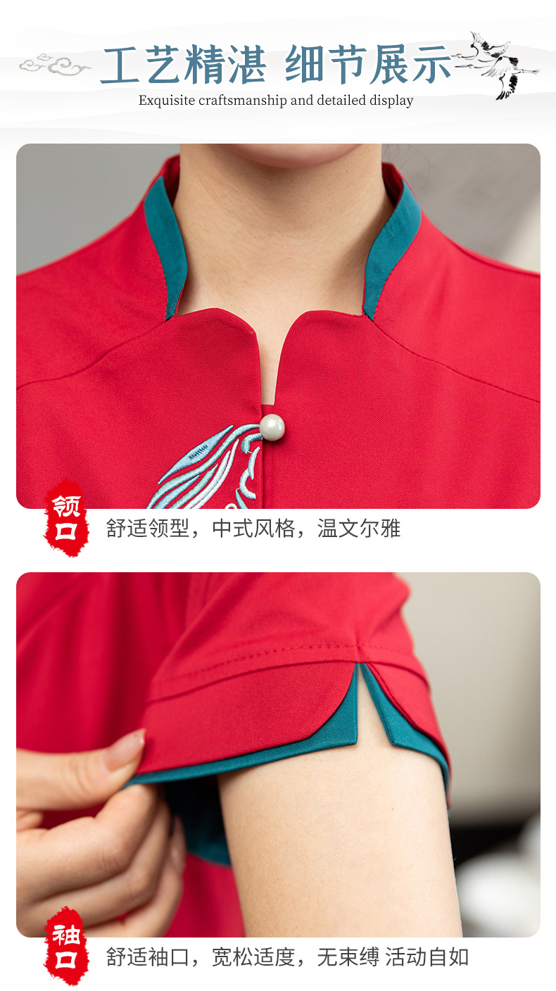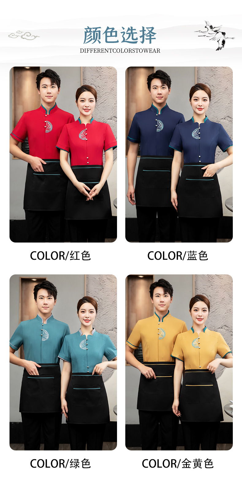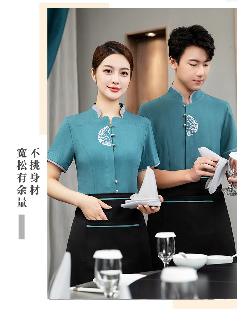 ชุดพนักงานภัตตาคารร้านอาหารจีนโรงน้ำชาญี่ปุ่นเกาหลี แขนสั้น F6705022 แดง น้ำเงิน เหลือง เขียว L -4XL