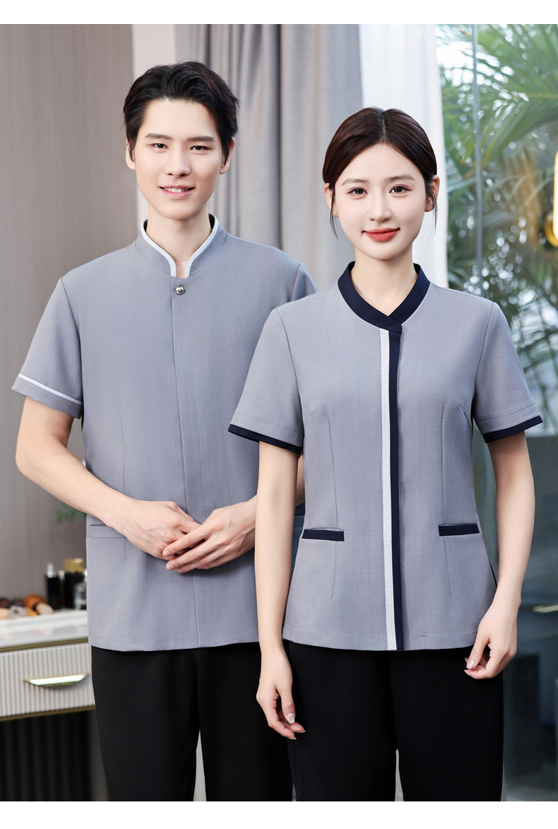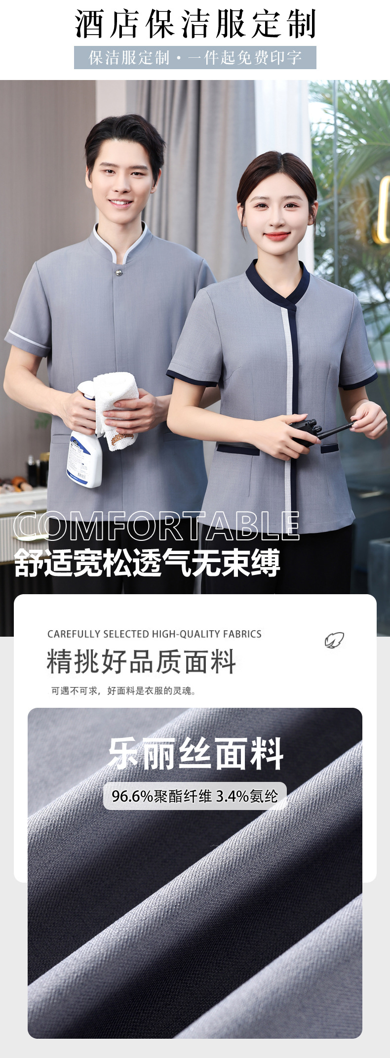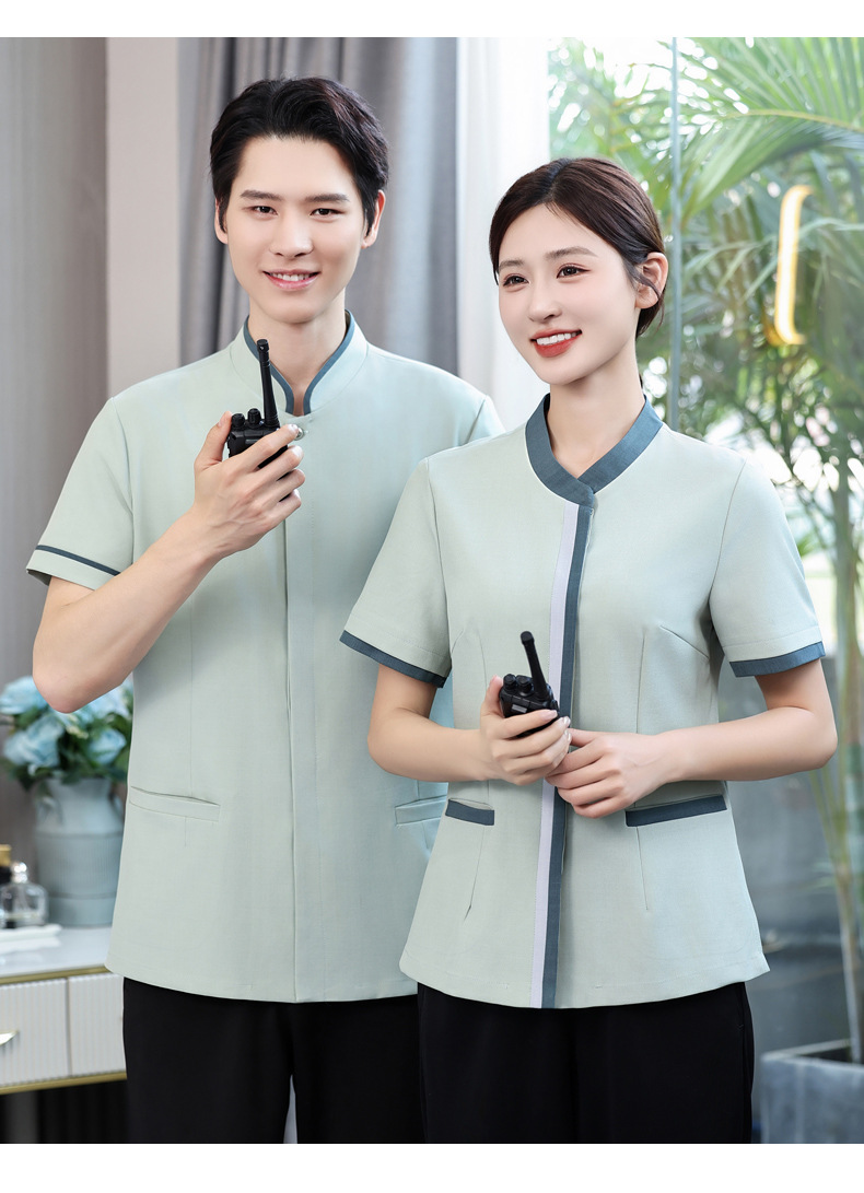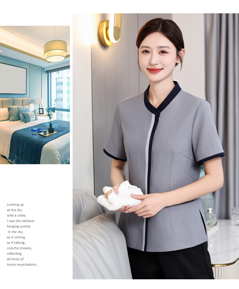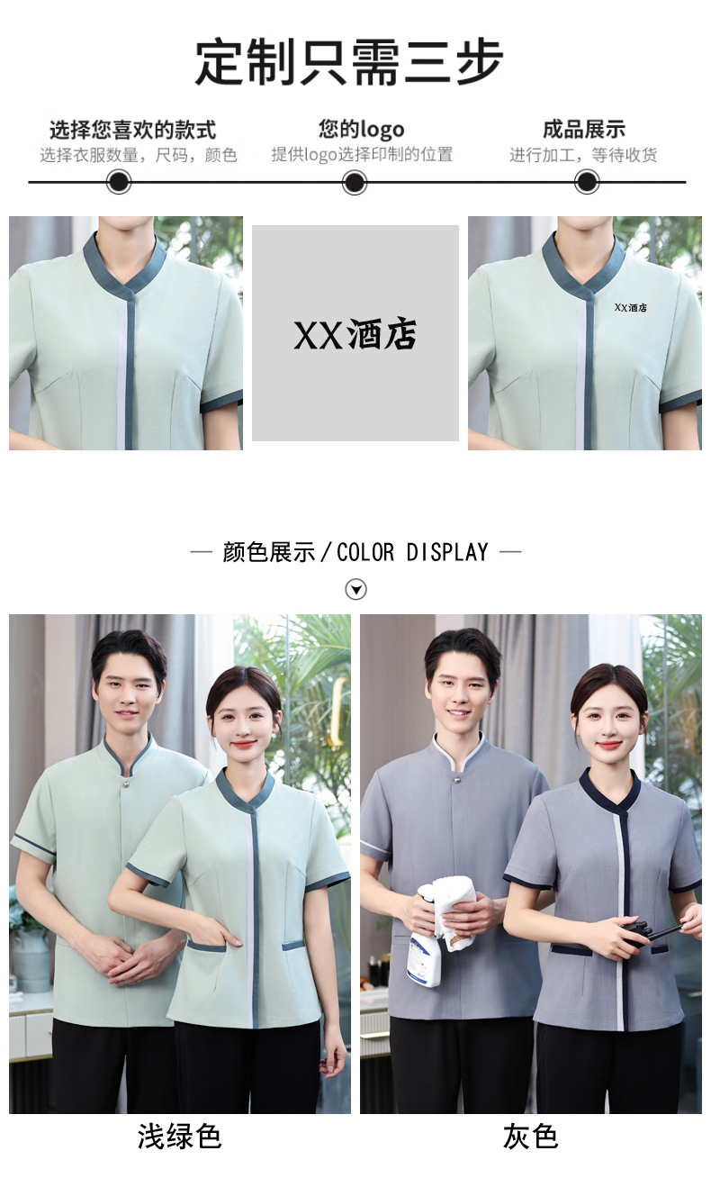 ชุดพนักงานทำความสะอาด เสื้อแม่บ้าน เสื้อแม่บ้านโรงแรมรีสอร์ท D6709002 เทา เขียว L-5XL