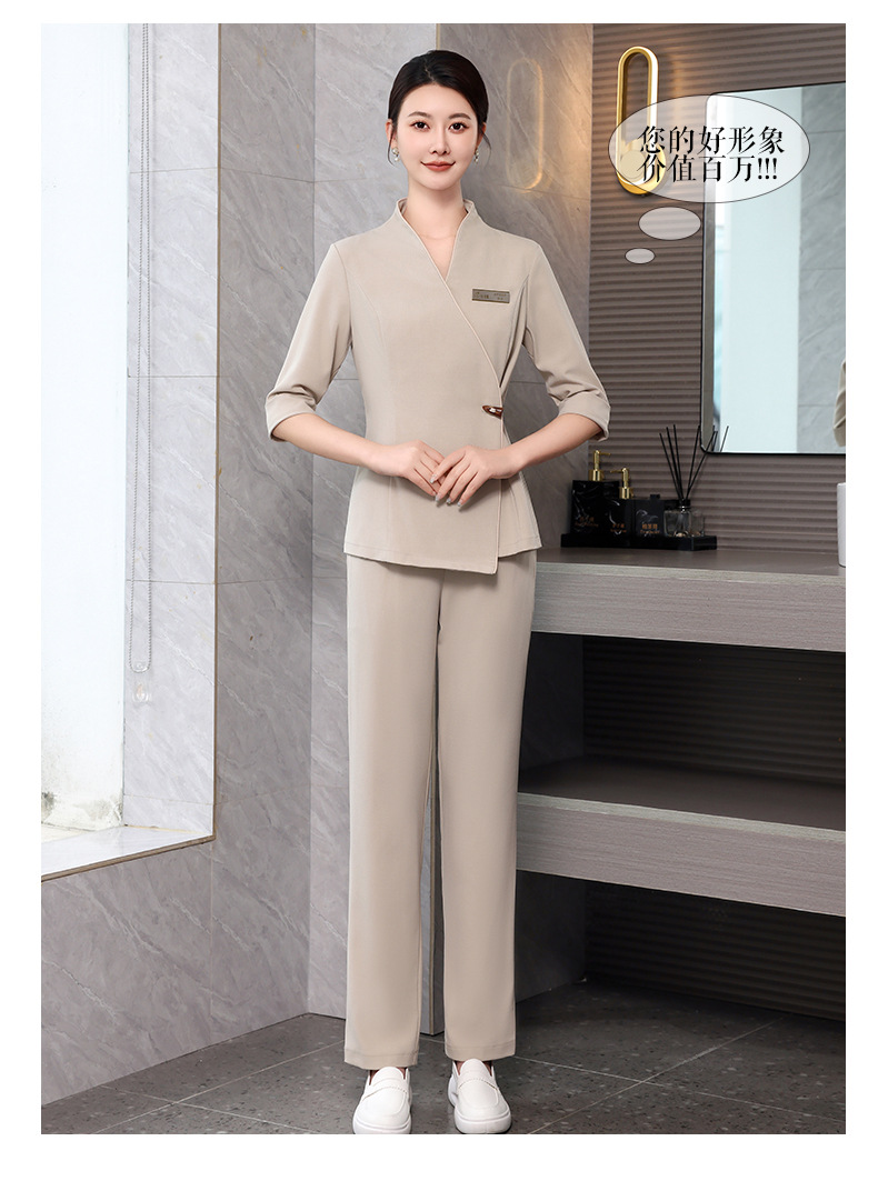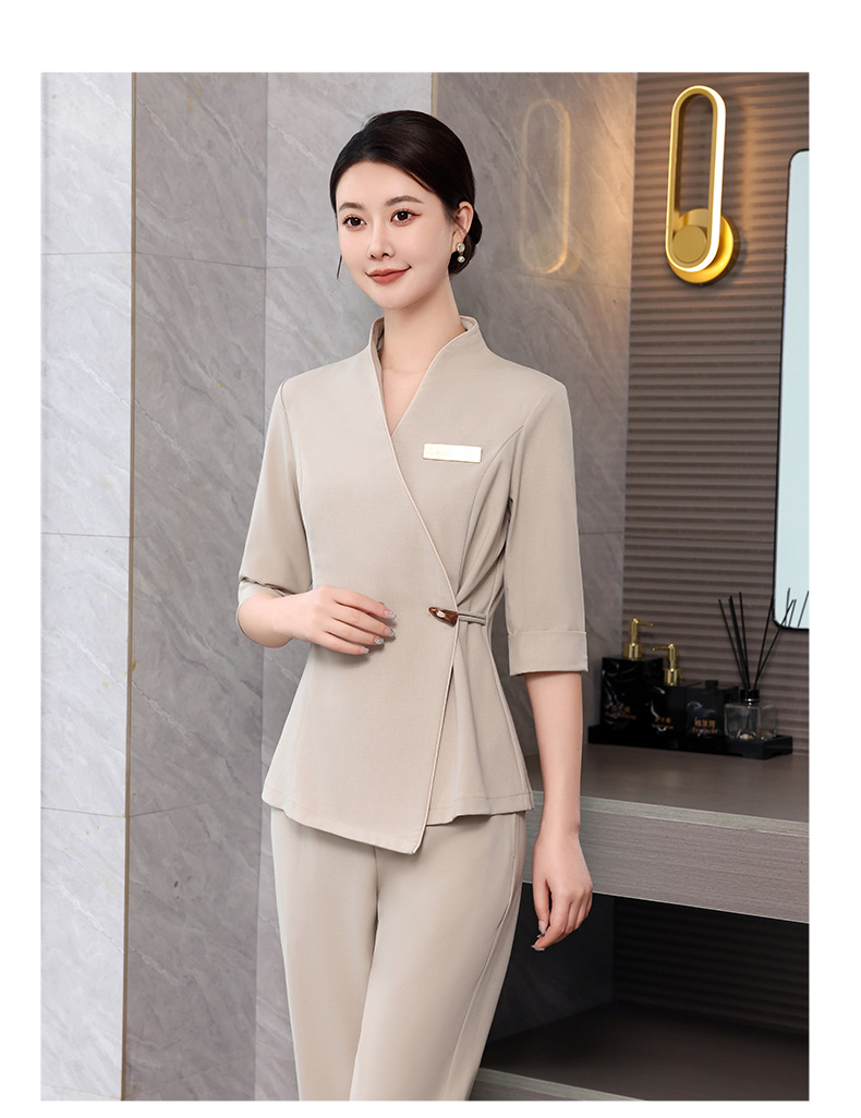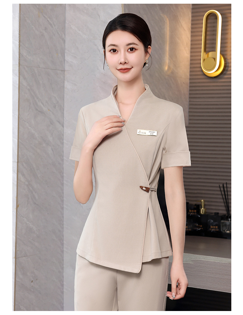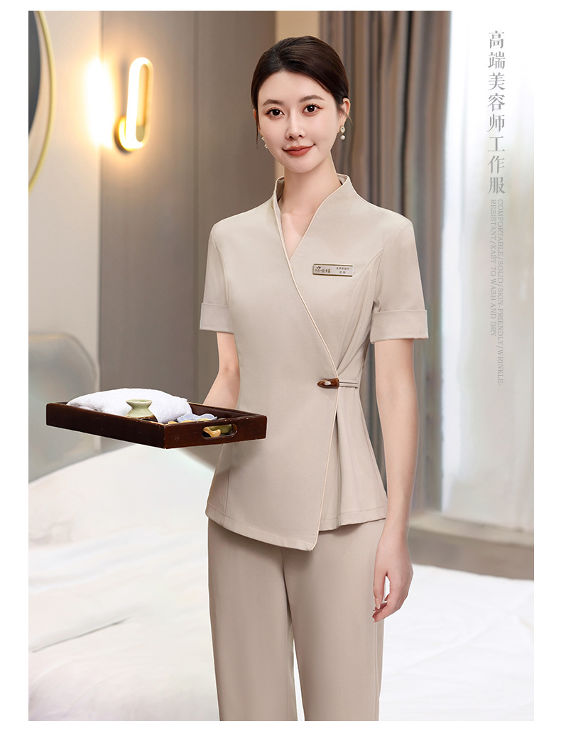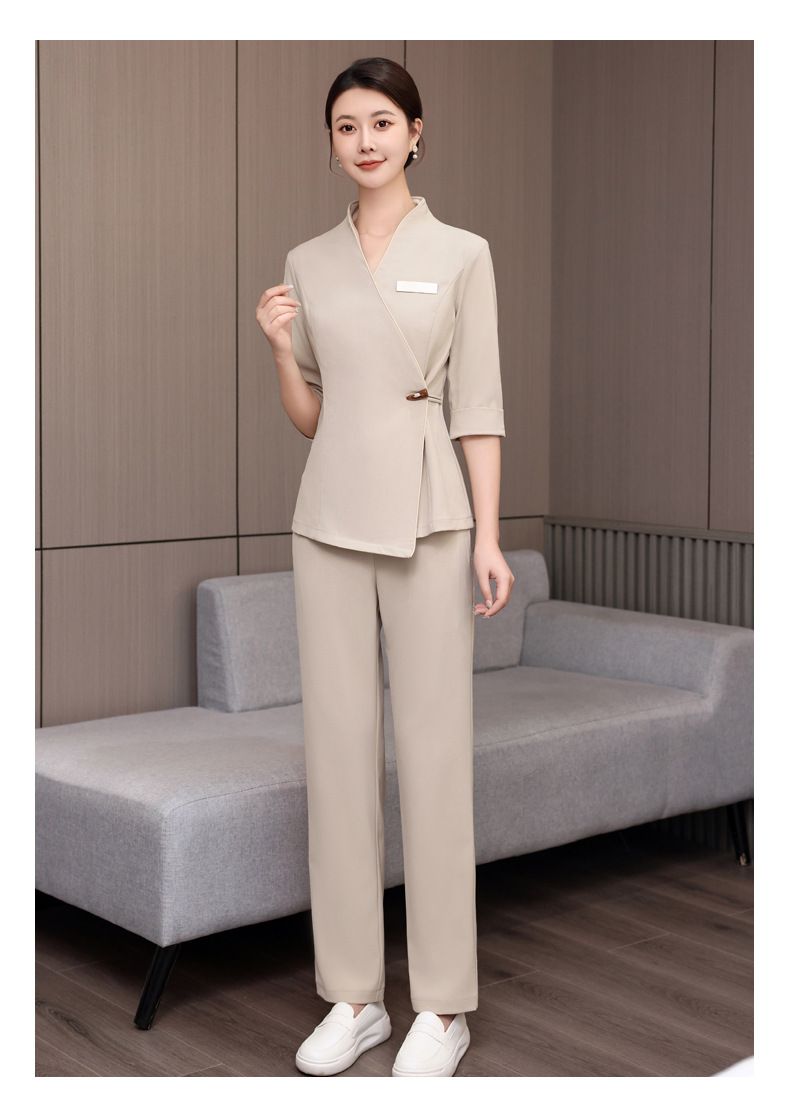 ชุดพนักงานนวดสปา ชุดพนักงานเสริมสวย ชุดทำงาน ชุดสูท S6804001 เบจ S-4XL