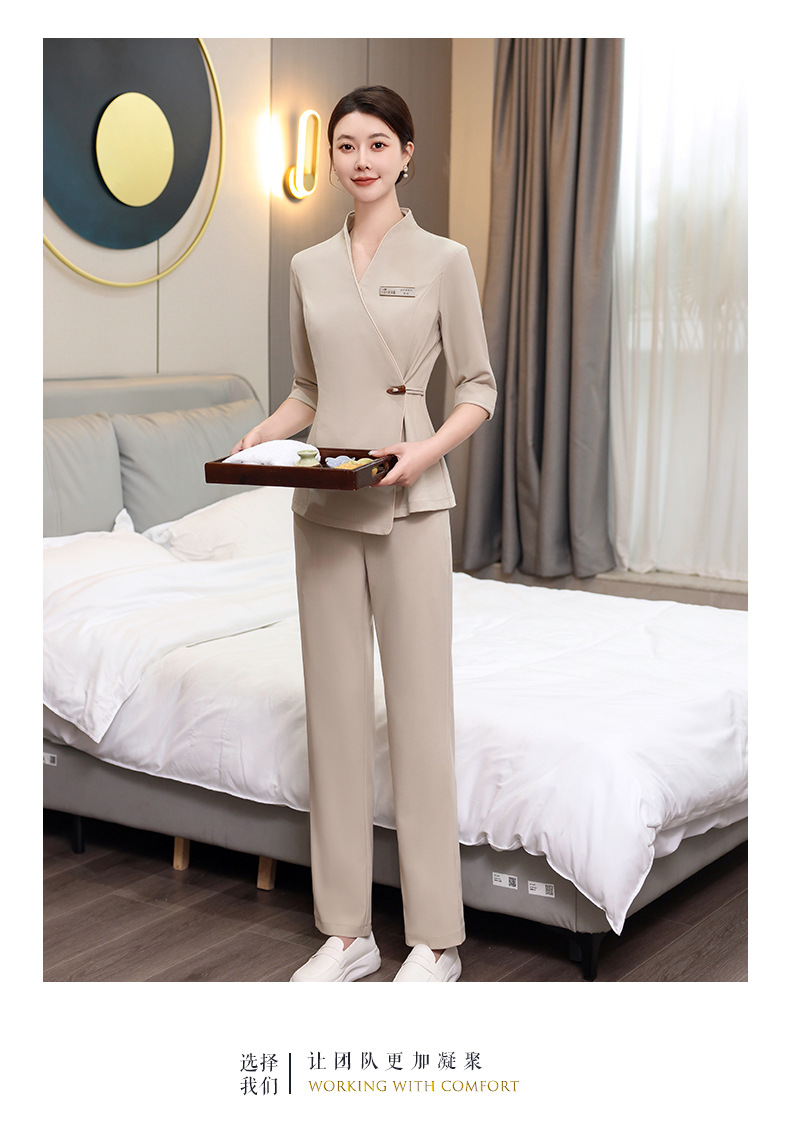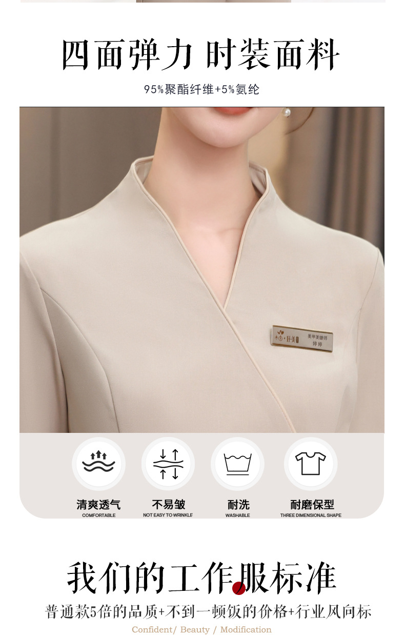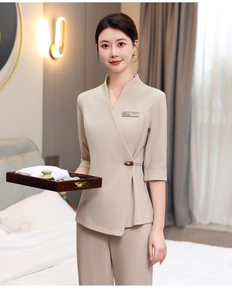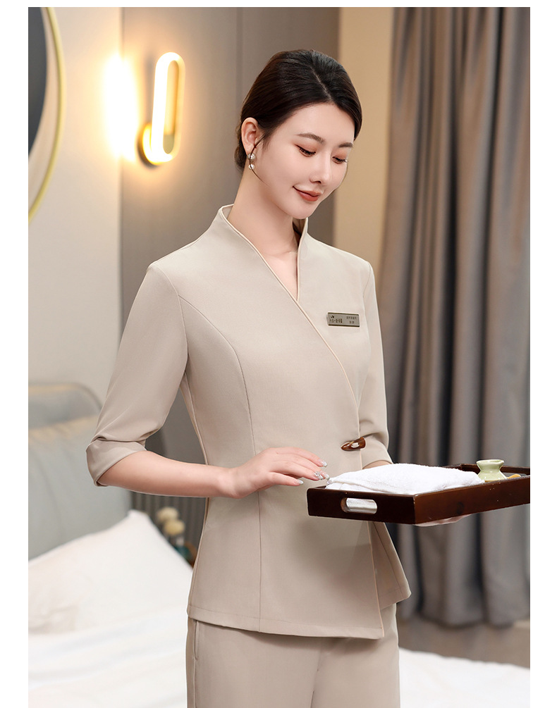 ชุดพนักงานนวดสปา ชุดพนักงานเสริมสวย ชุดทำงาน ชุดสูท S6804001 เบจ S-4XL
