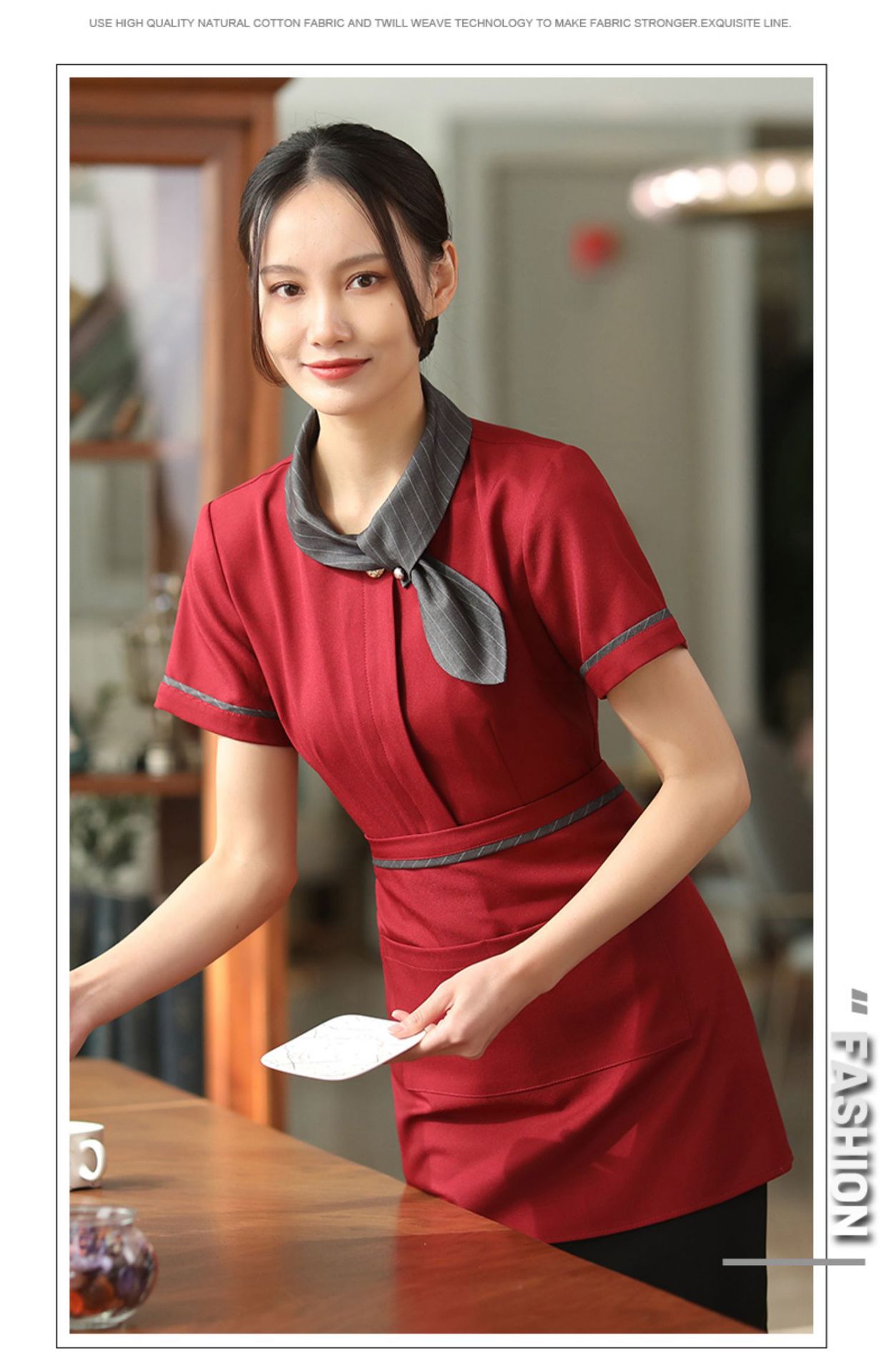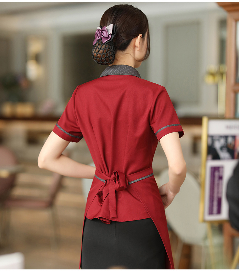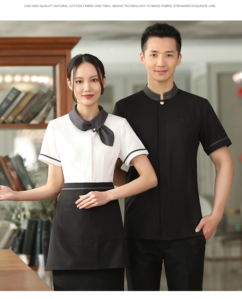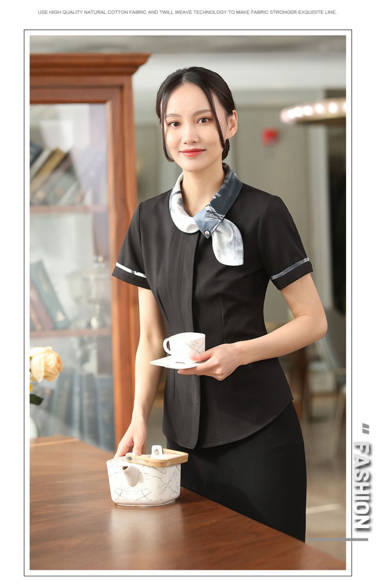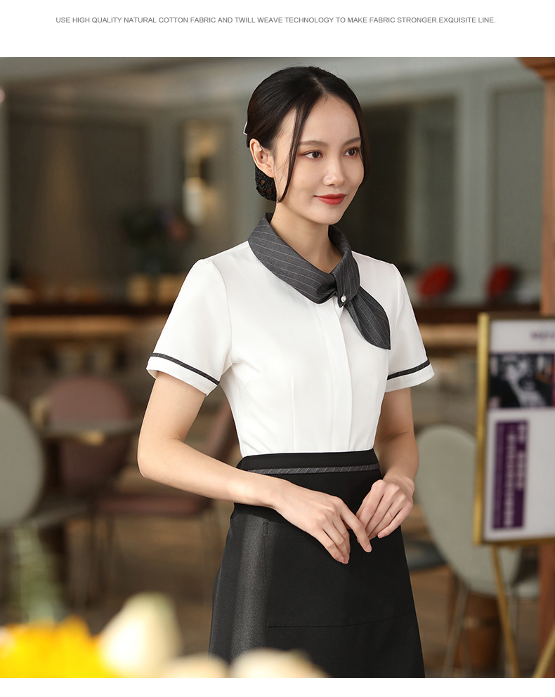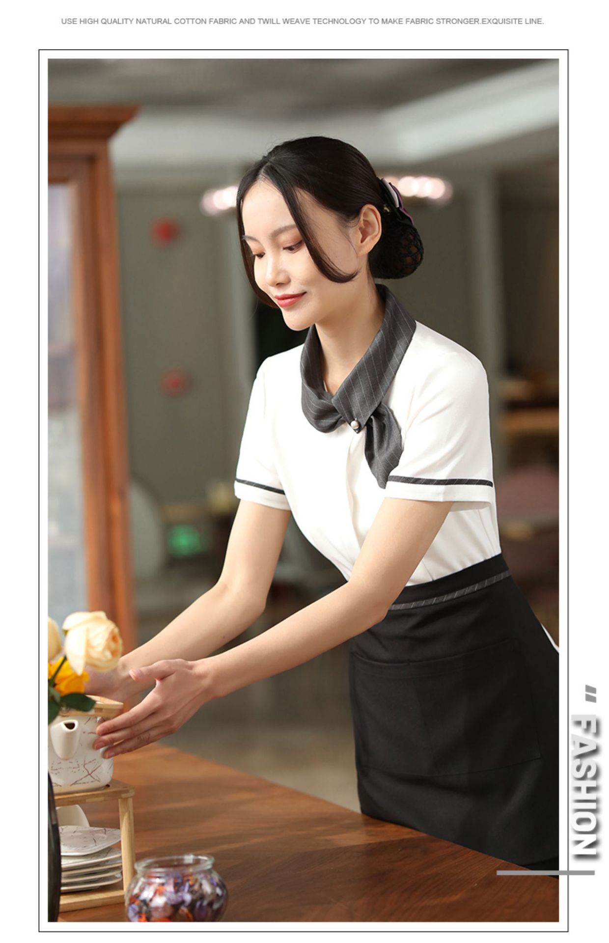 เครื่องแบบชุดฟอร์มพนักงานร้านอาหารกาแฟโรงแรม ชุดพนักงานต้อนรับ แขนสั้นกระดุมหน้า