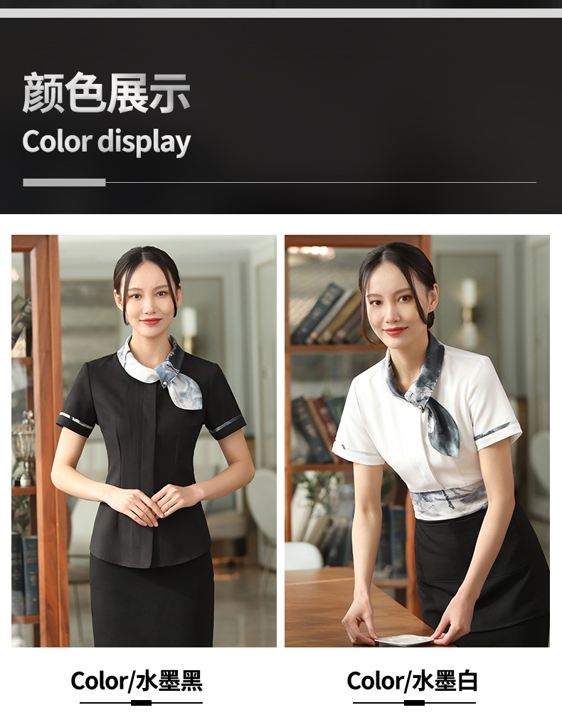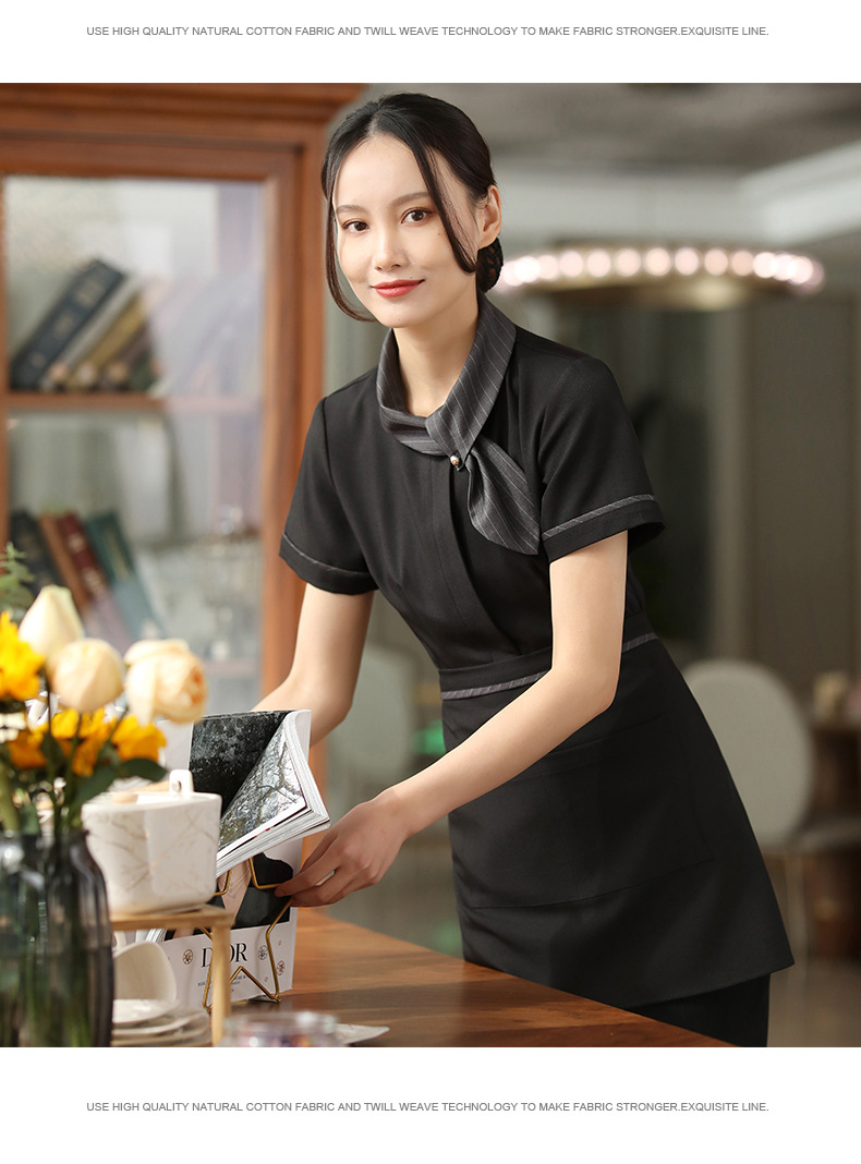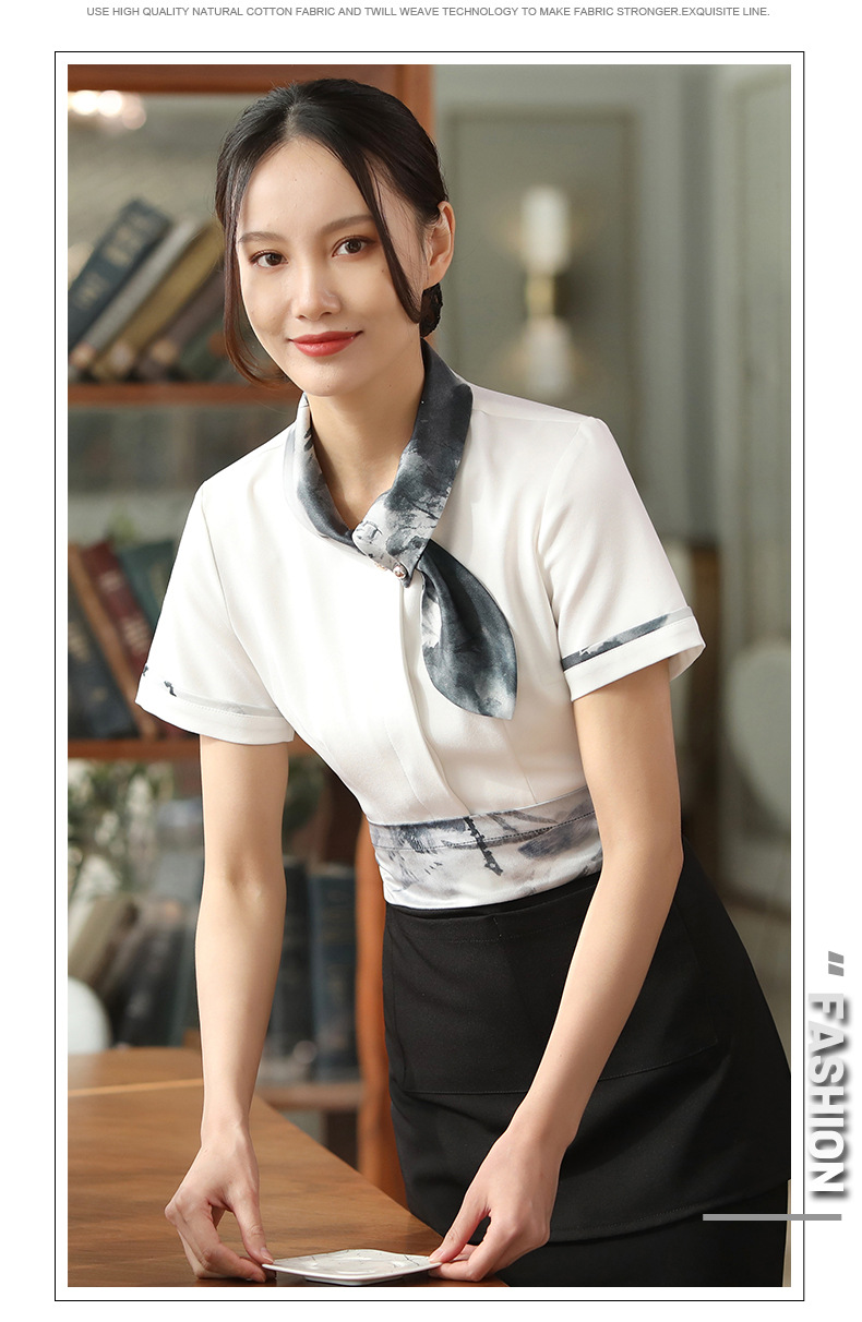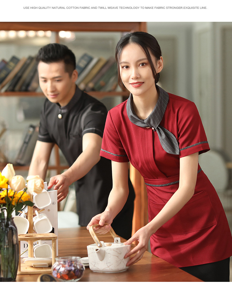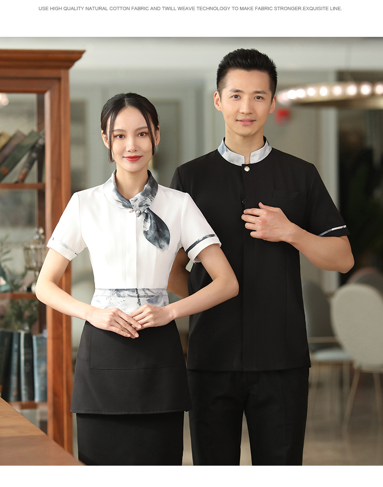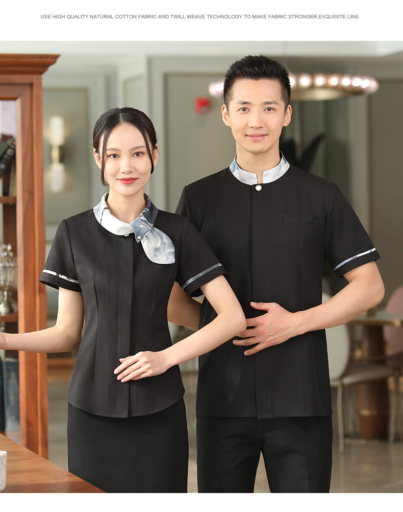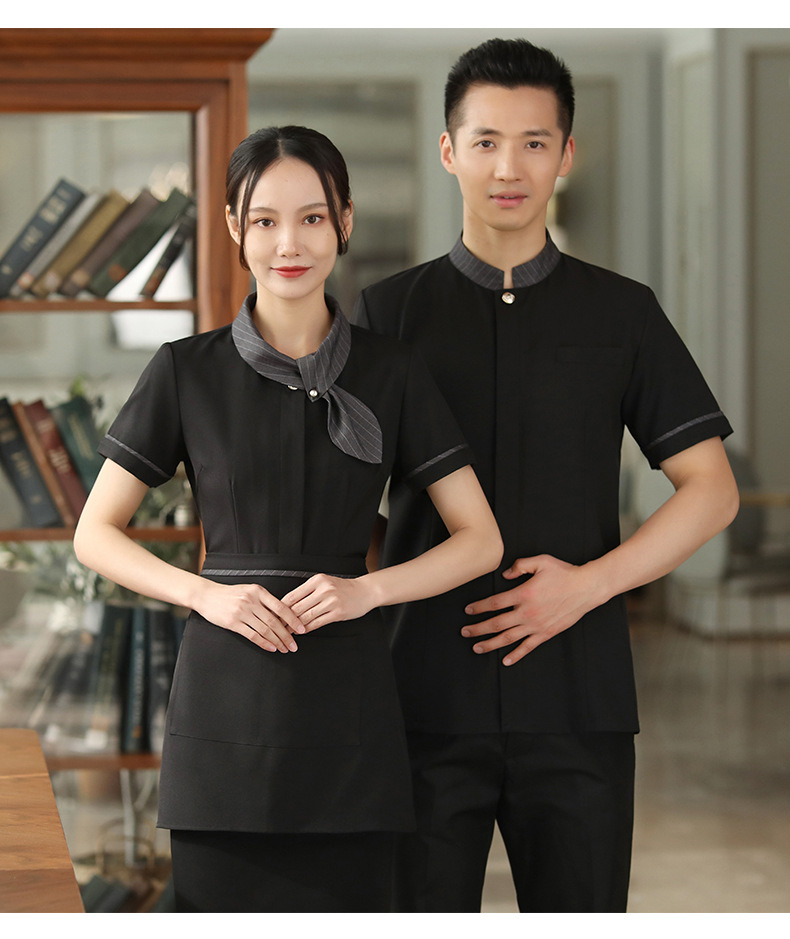 เครื่องแบบชุดฟอร์มพนักงานร้านอาหารกาแฟโรงแรม ชุดพนักงานต้อนรับ แขนสั้นกระดุมหน้า