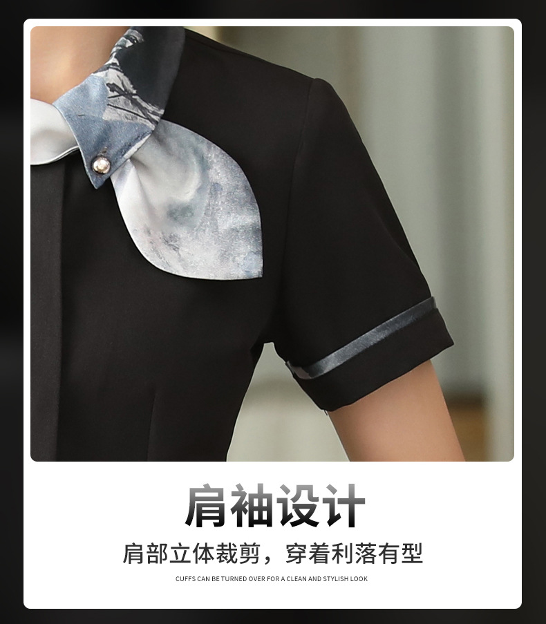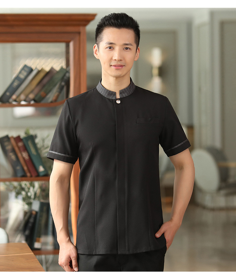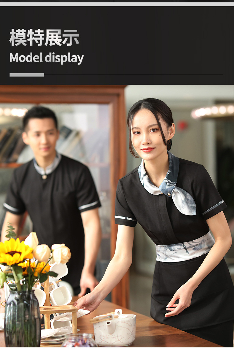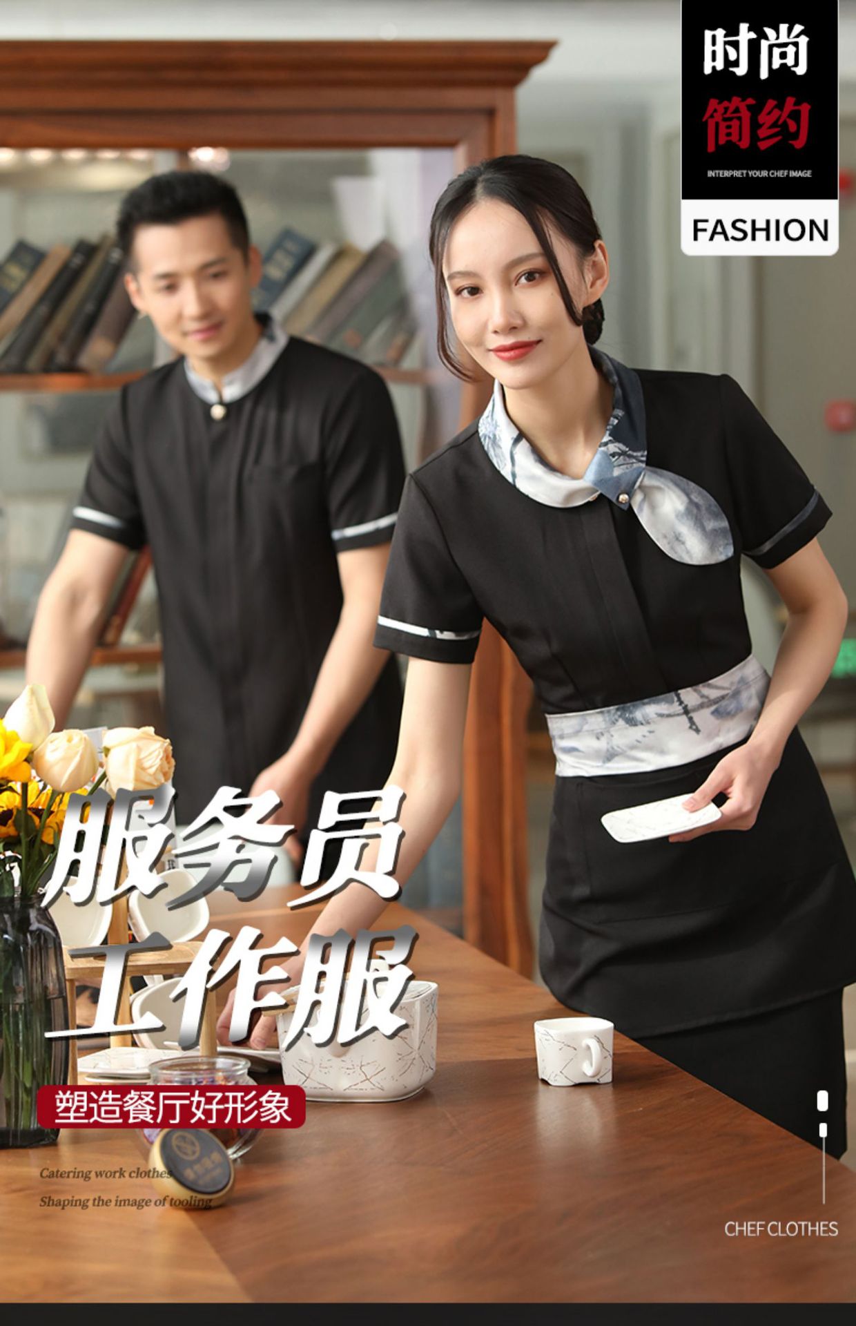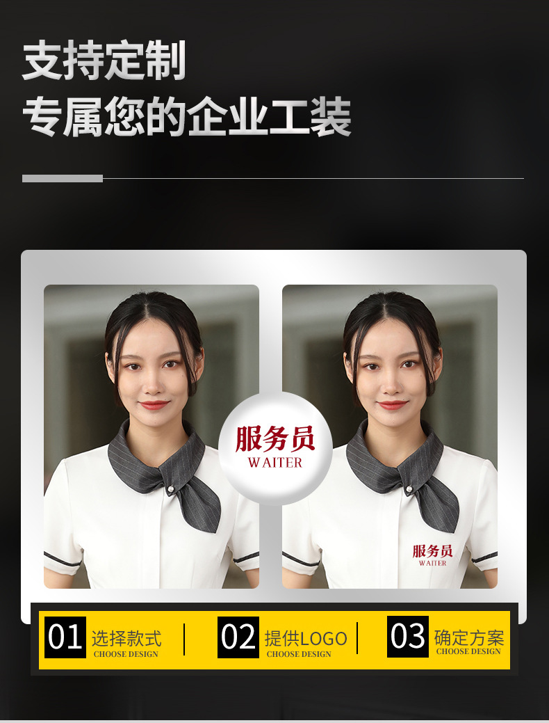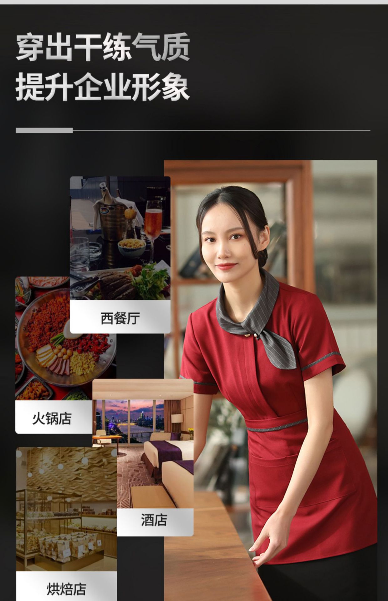 เครื่องแบบชุดฟอร์มพนักงานร้านอาหารกาแฟโรงแรม ชุดพนักงานต้อนรับ แขนสั้นกระดุมหน้า
