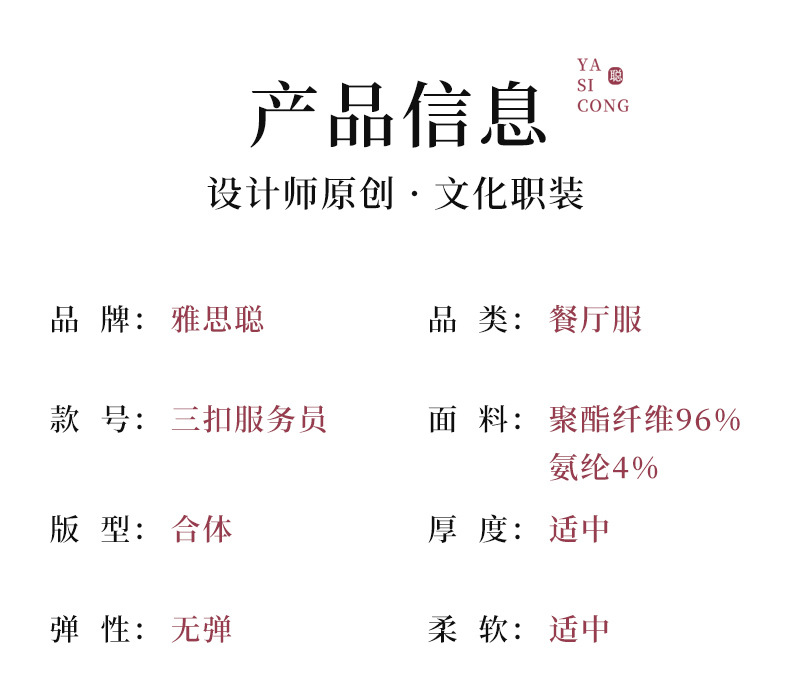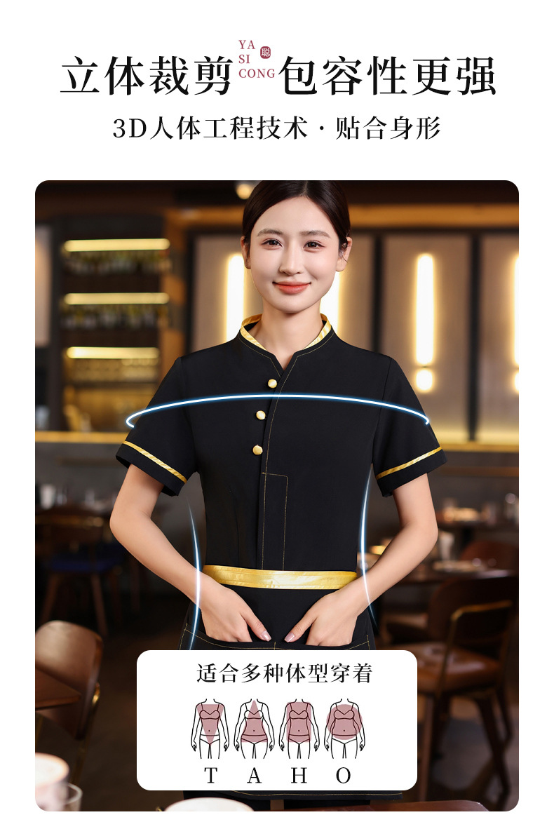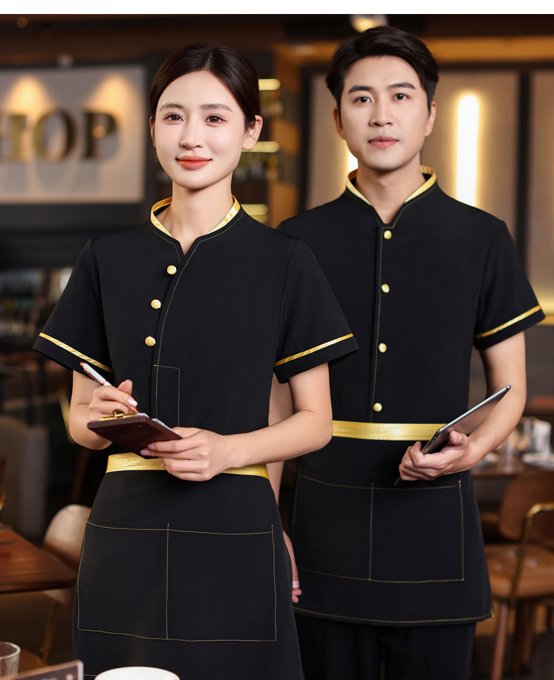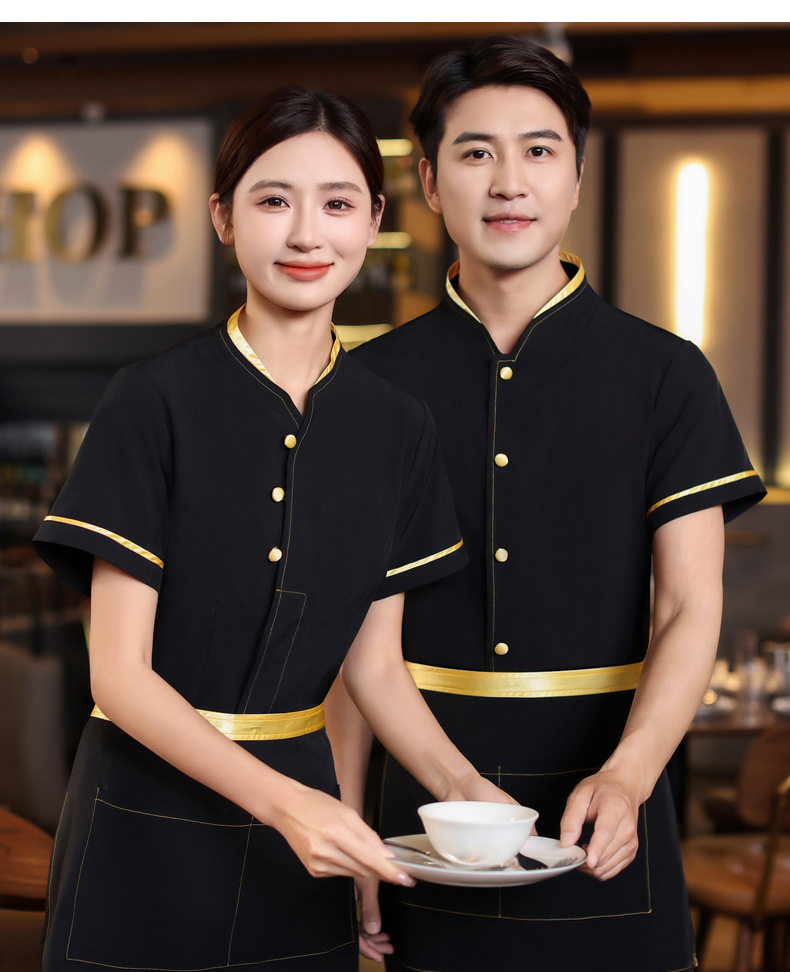 เครื่องแบบชุดฟอร์มพนักงานร้านอาหารกาแฟโรงแรม ชุดพนักงานต้อนรับ แขนสั้นกระดุมหน้า