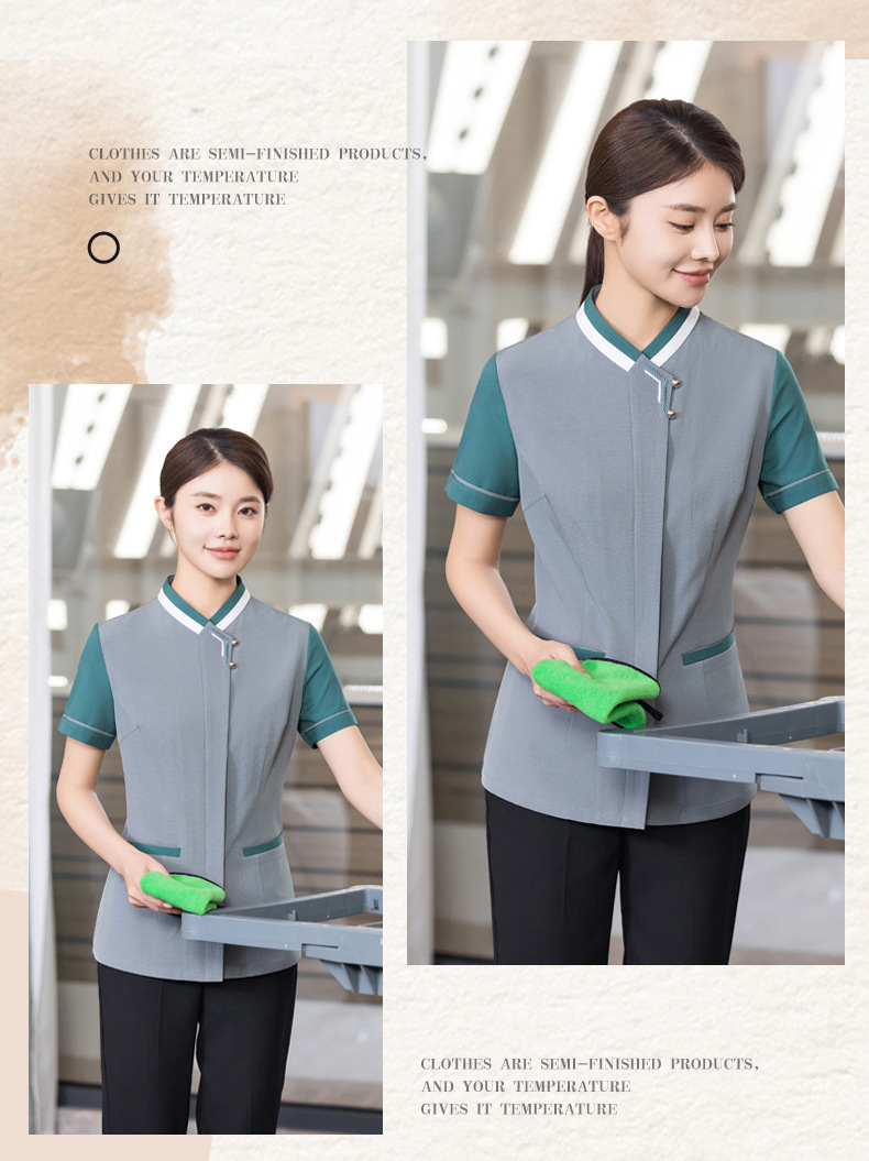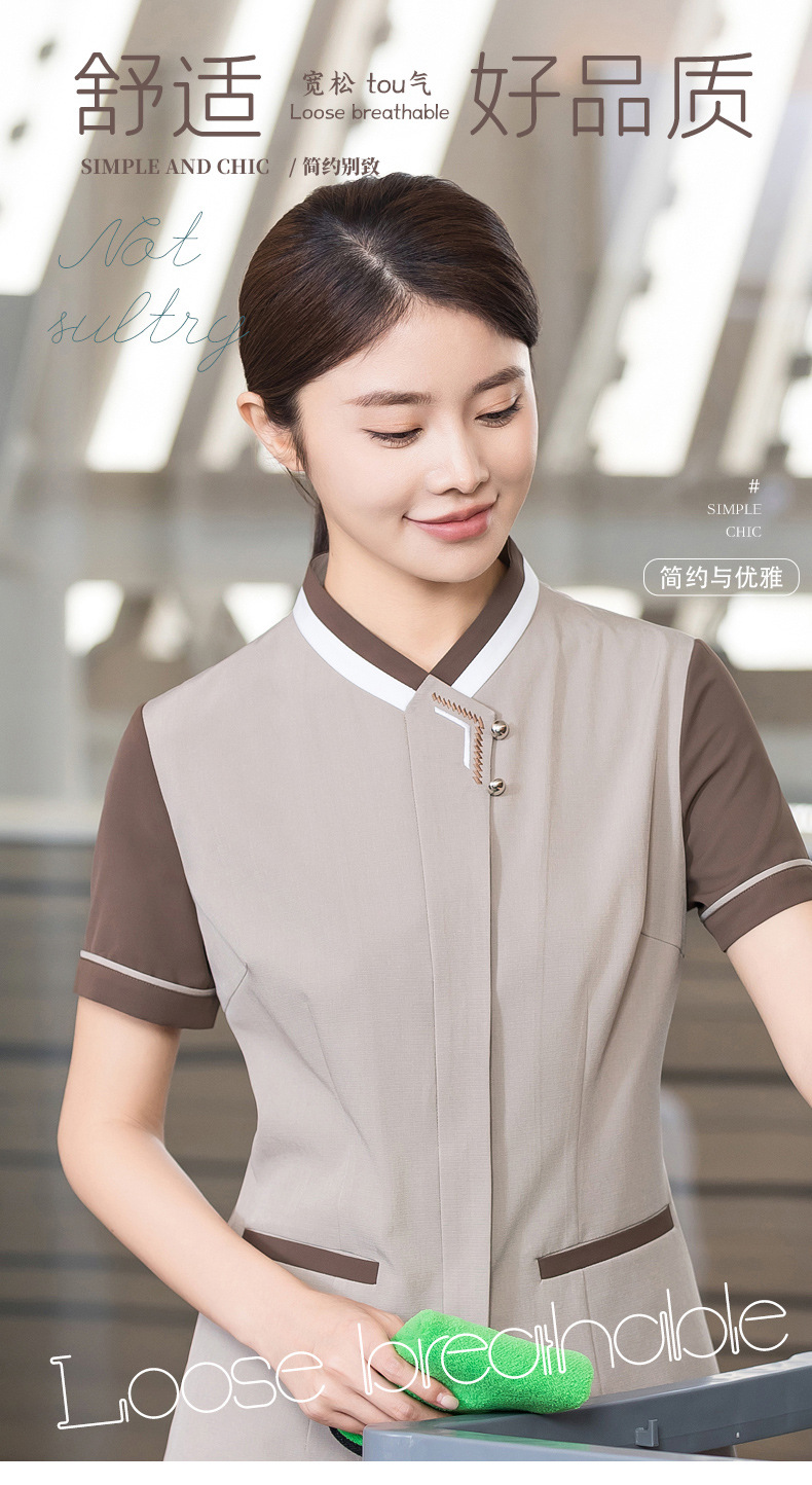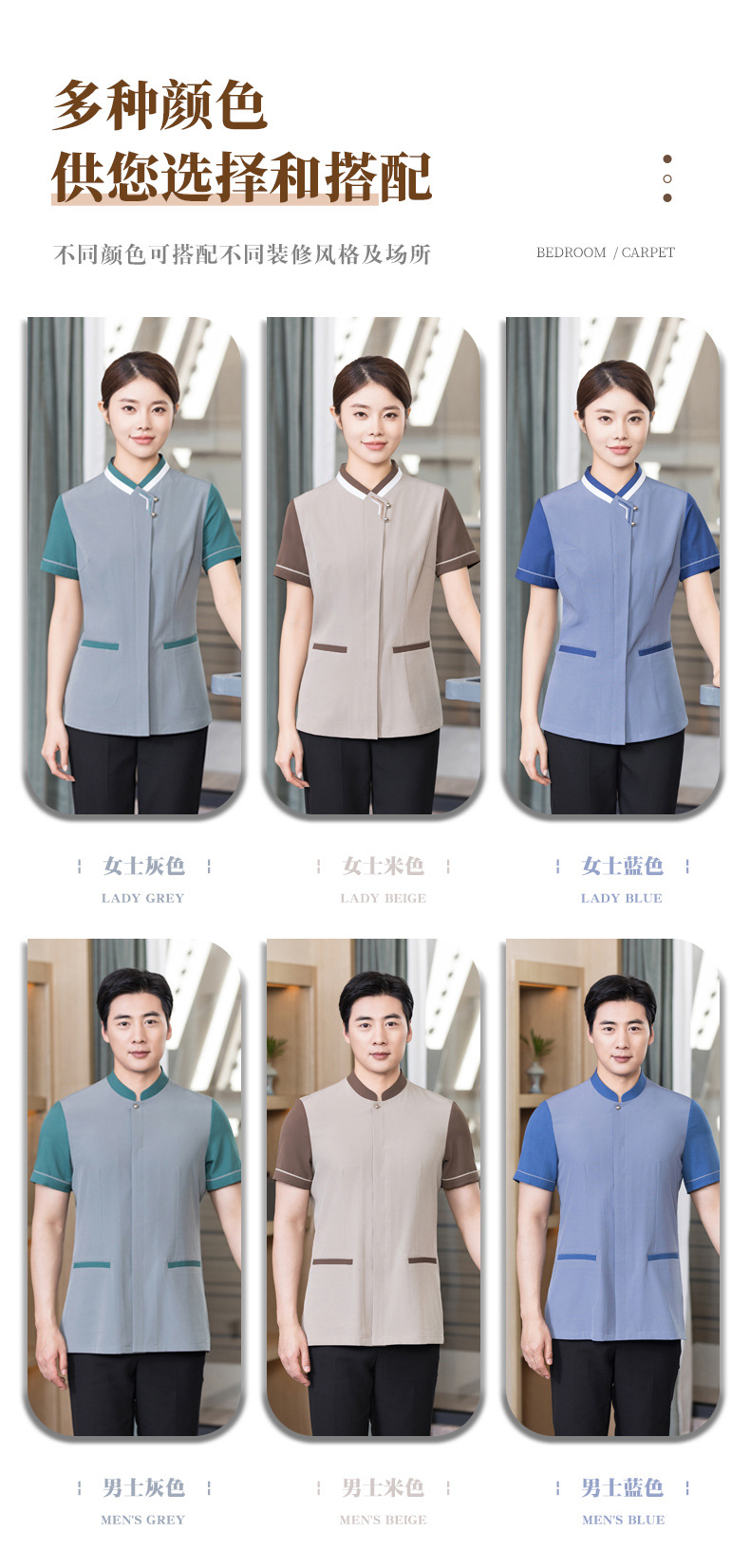 เสื้อพนักงานทำความสะอาด เสื้อแม่บ้าน เสื้อแม่บ้านโรงแรมรีสอร์ท D6807002 เขียว น้ำตาล ฟ้า L-6XL
