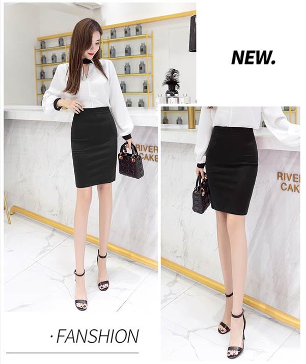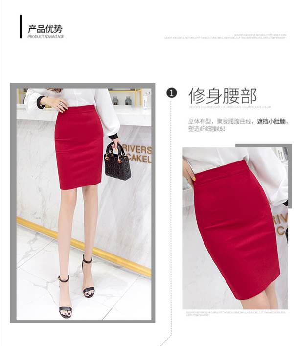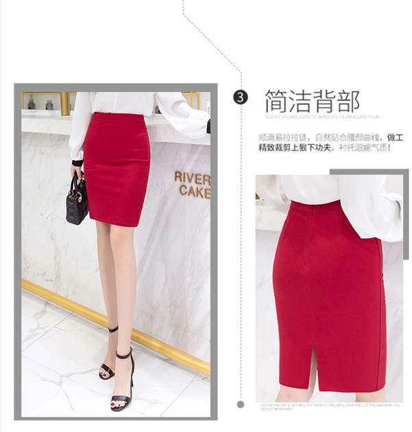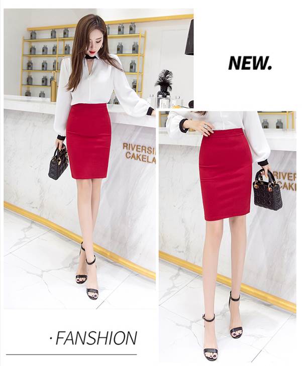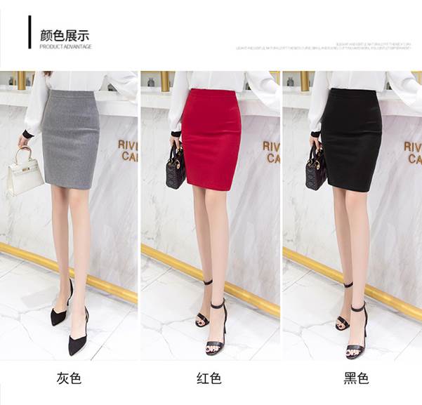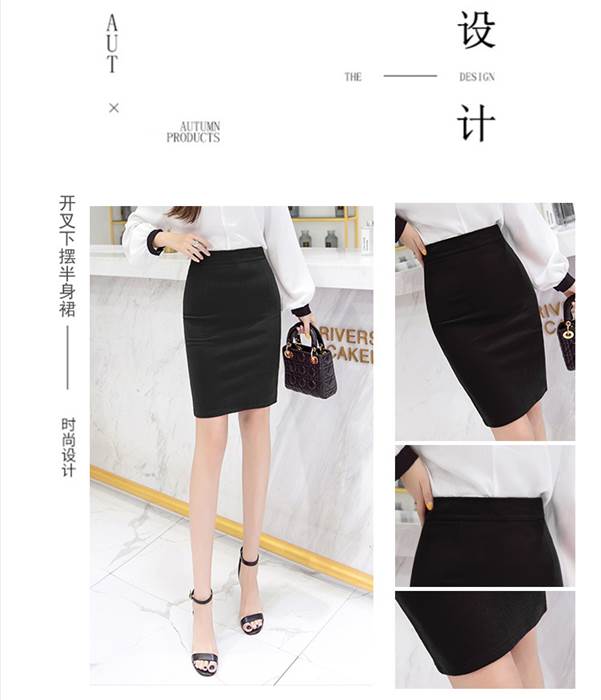 กระโปรงพนักงาน เอวสูง ทรงเอ มีความยืดหยุ่น KQ6811003 ดำ เทา แดง S-3XL