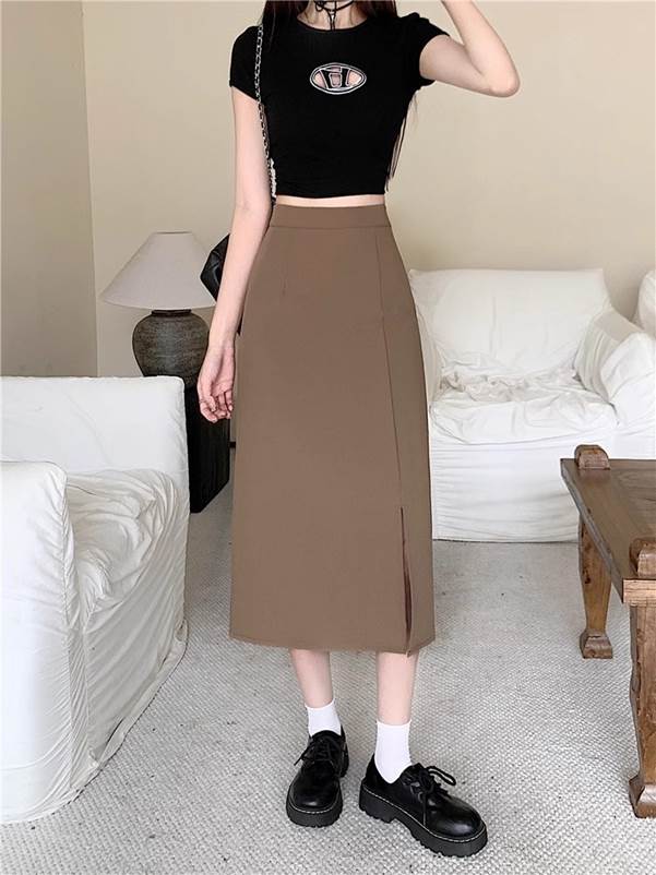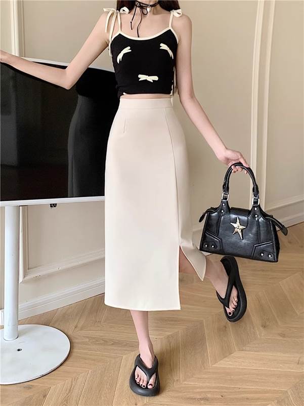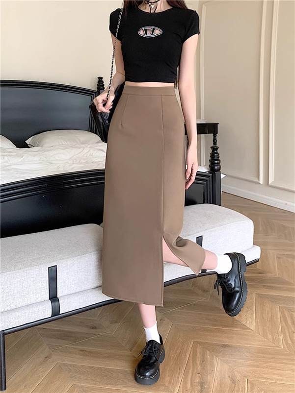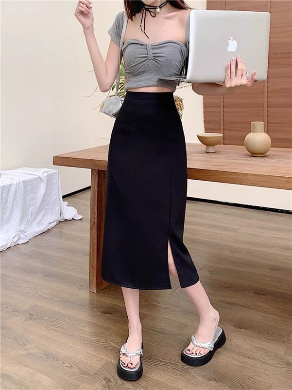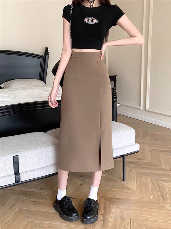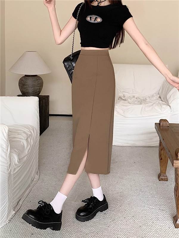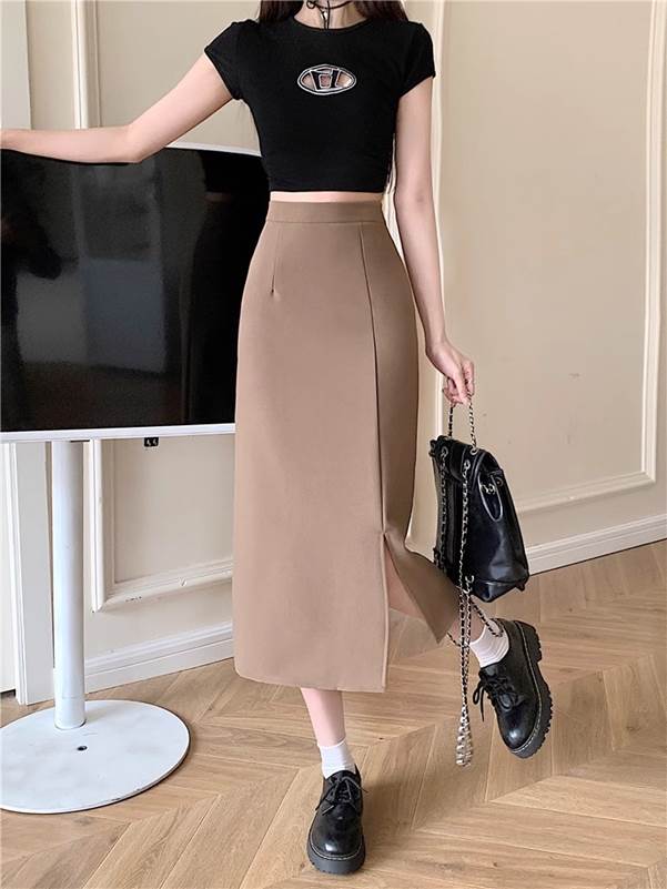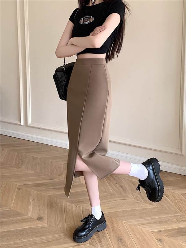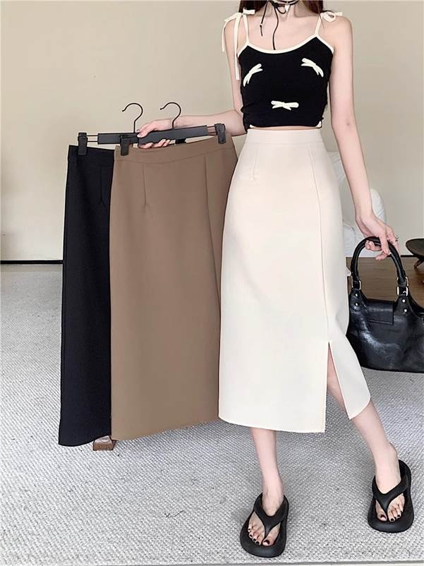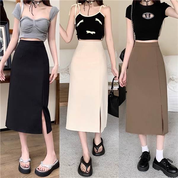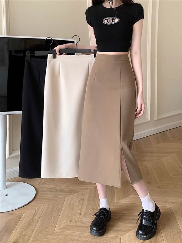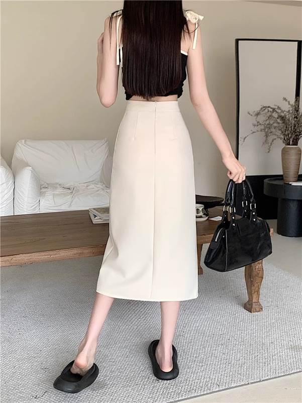กระโปรงพนักงานทรงเอยาว มีความยืดหยุ่น เอวสูง KQ6811004 สีภาพ S-5XL