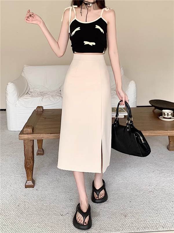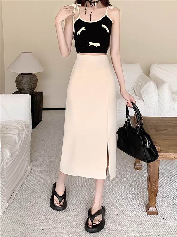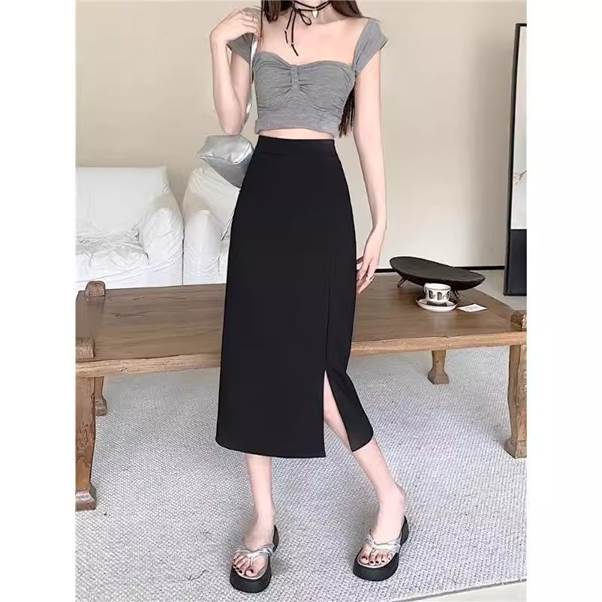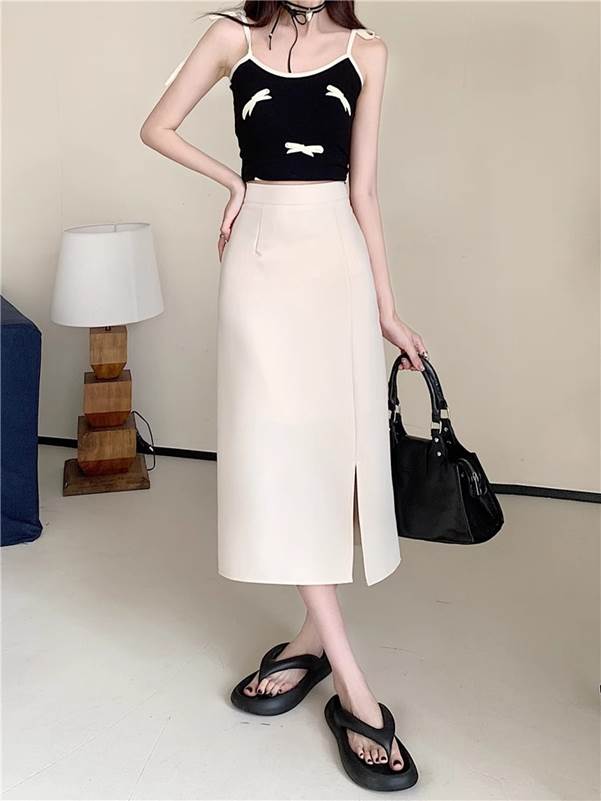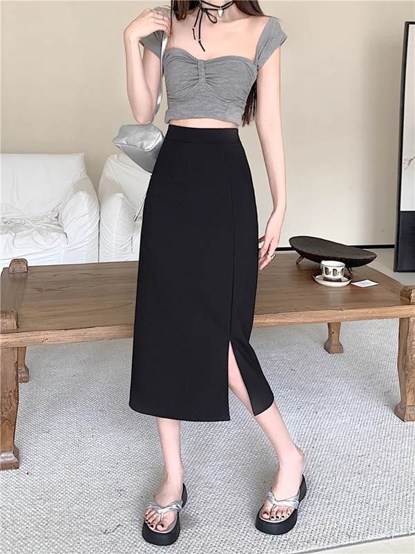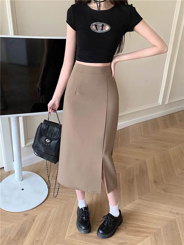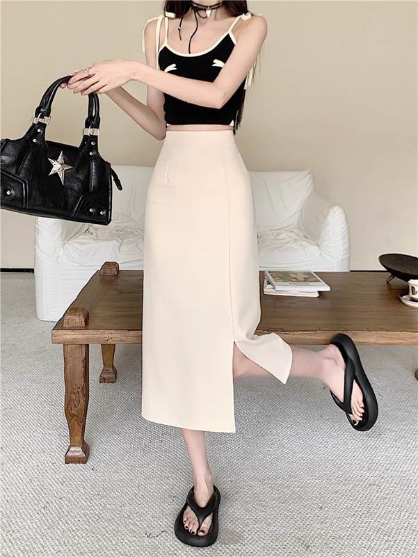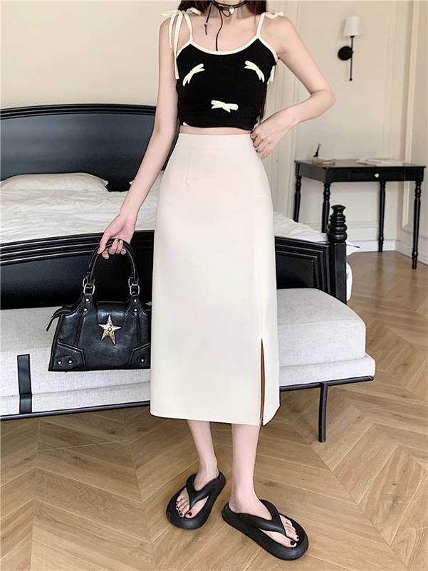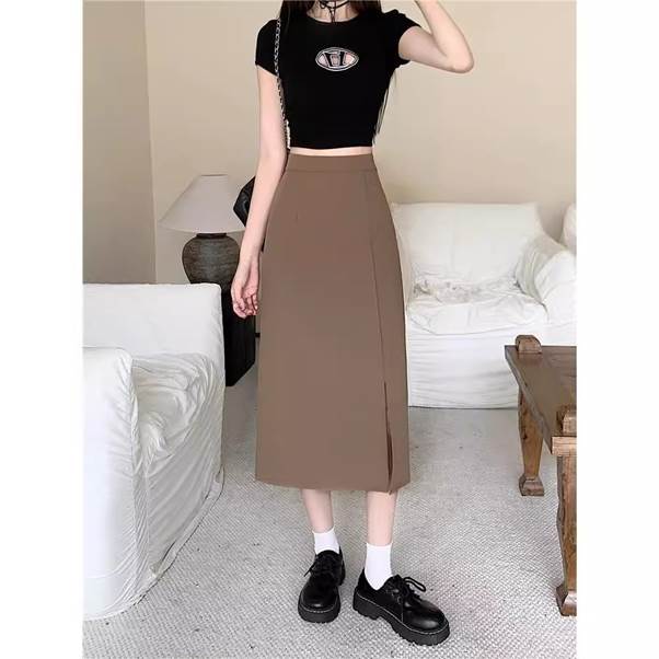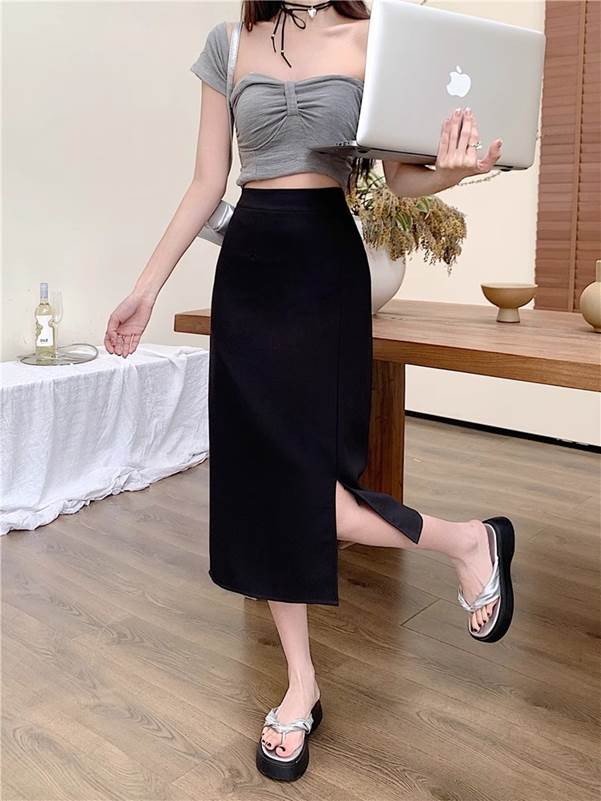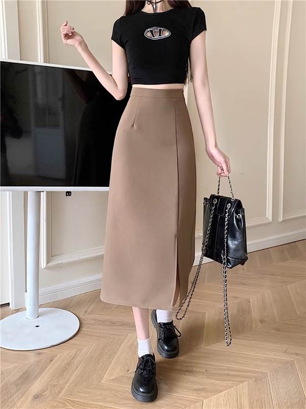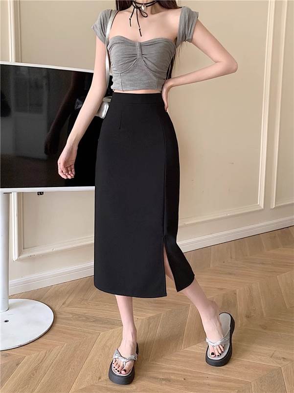 กระโปรงพนักงานทรงเอยาว มีความยืดหยุ่น เอวสูง KQ6811004 สีภาพ S-5XL