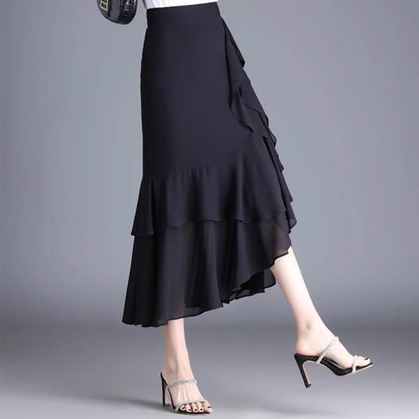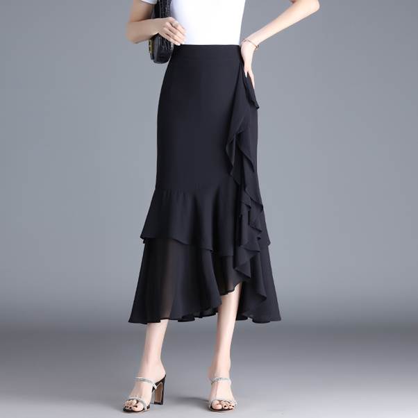 กระโปรงพนักงานทรงเอยาว มีความยืดหยุ่น เอวสูง KQ6811008 สีภาพ S-3XL
