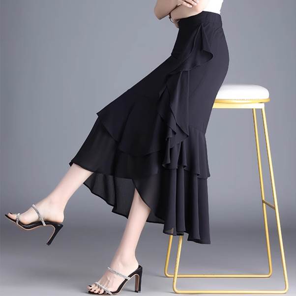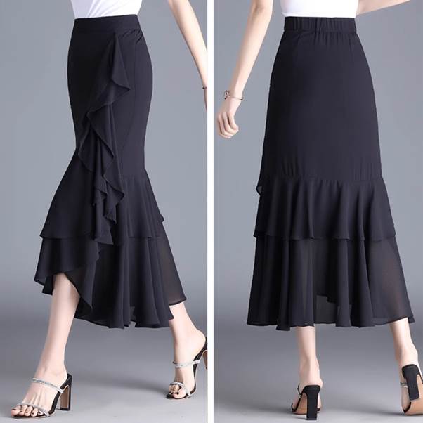 กระโปรงพนักงาน เอวสูง ทรงเอยาว มีความยืดหยุ่น